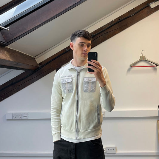 Calvin Klein Cream Mesh Zip-Through Panelled Jumper