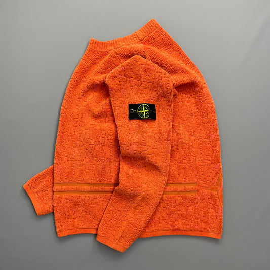 Stone Island Orange AW19 Textured Knit Jumper w/ Back Emblem