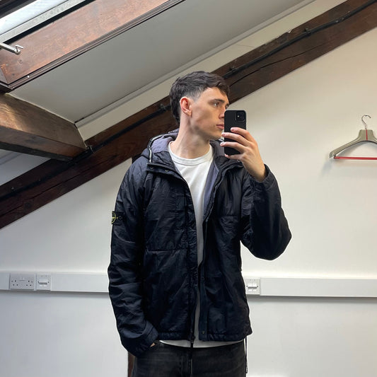 Stone Island Black Quilted Micro Yarn Hooded Jacket