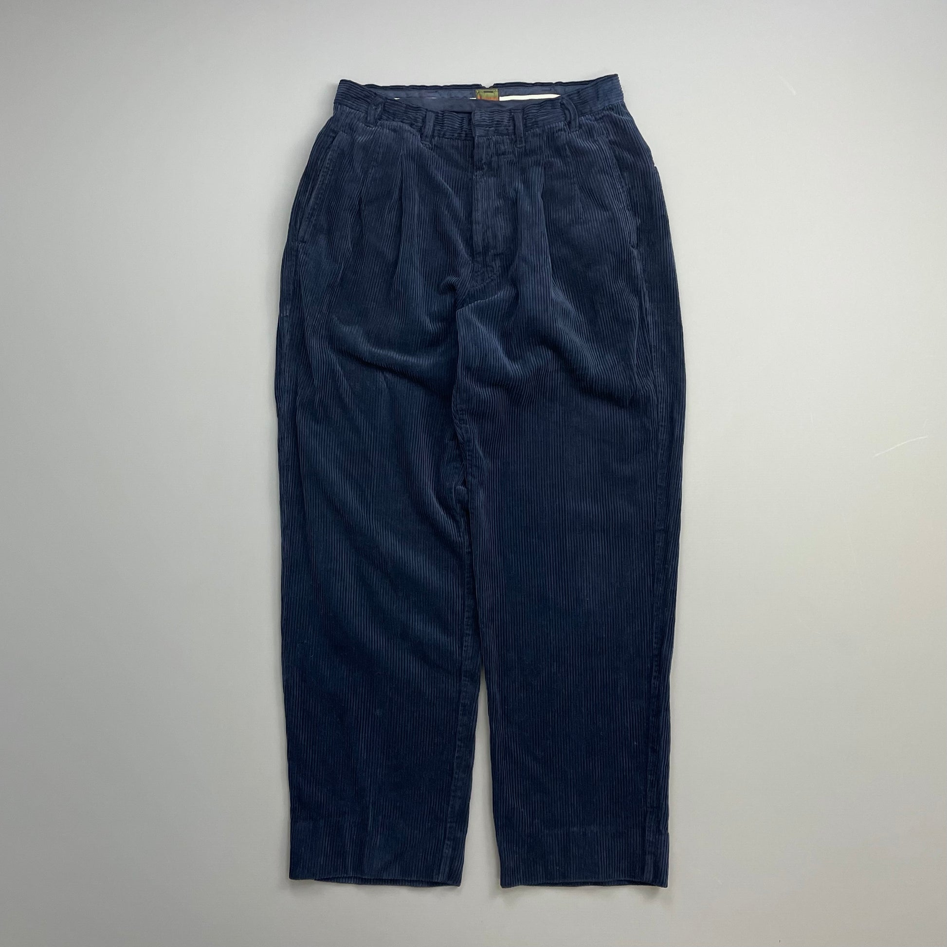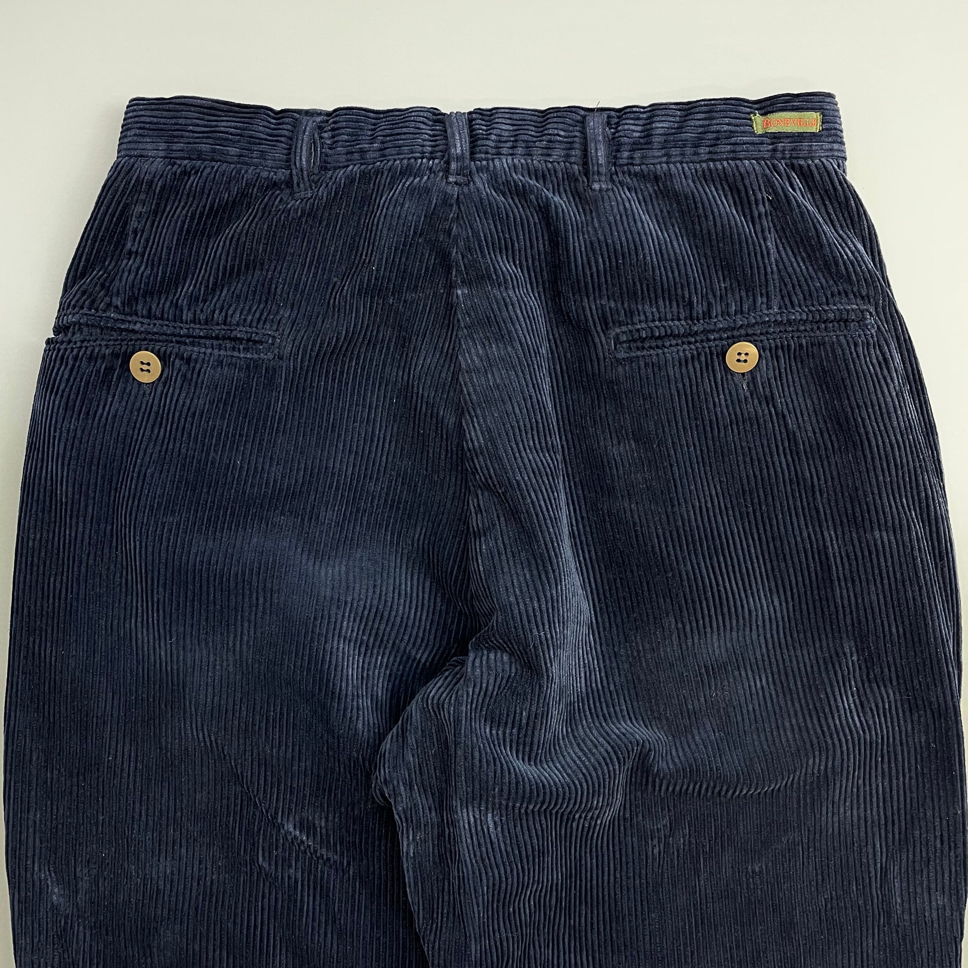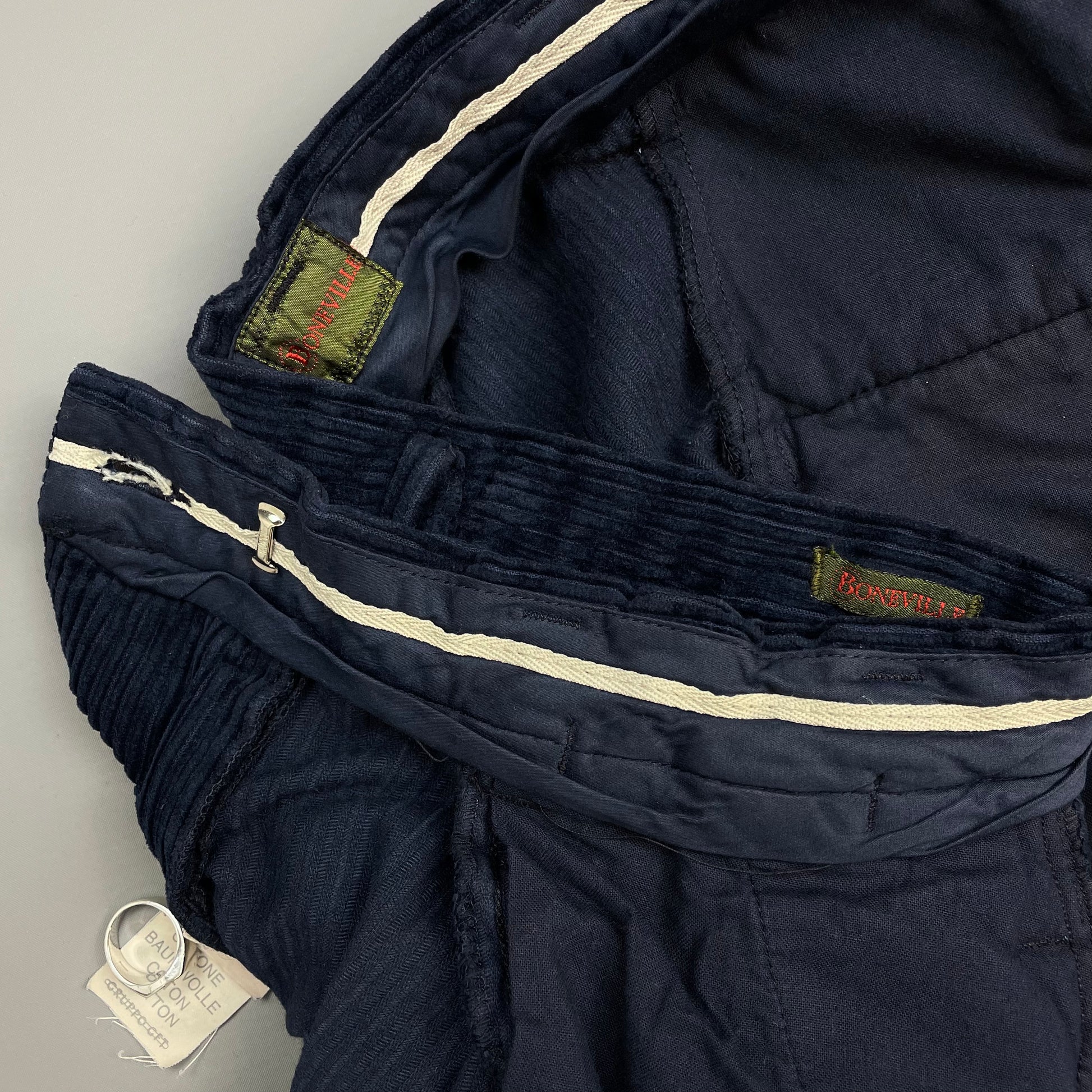 Boneville Navy 90s Pleated Thick Corduroy Trousers