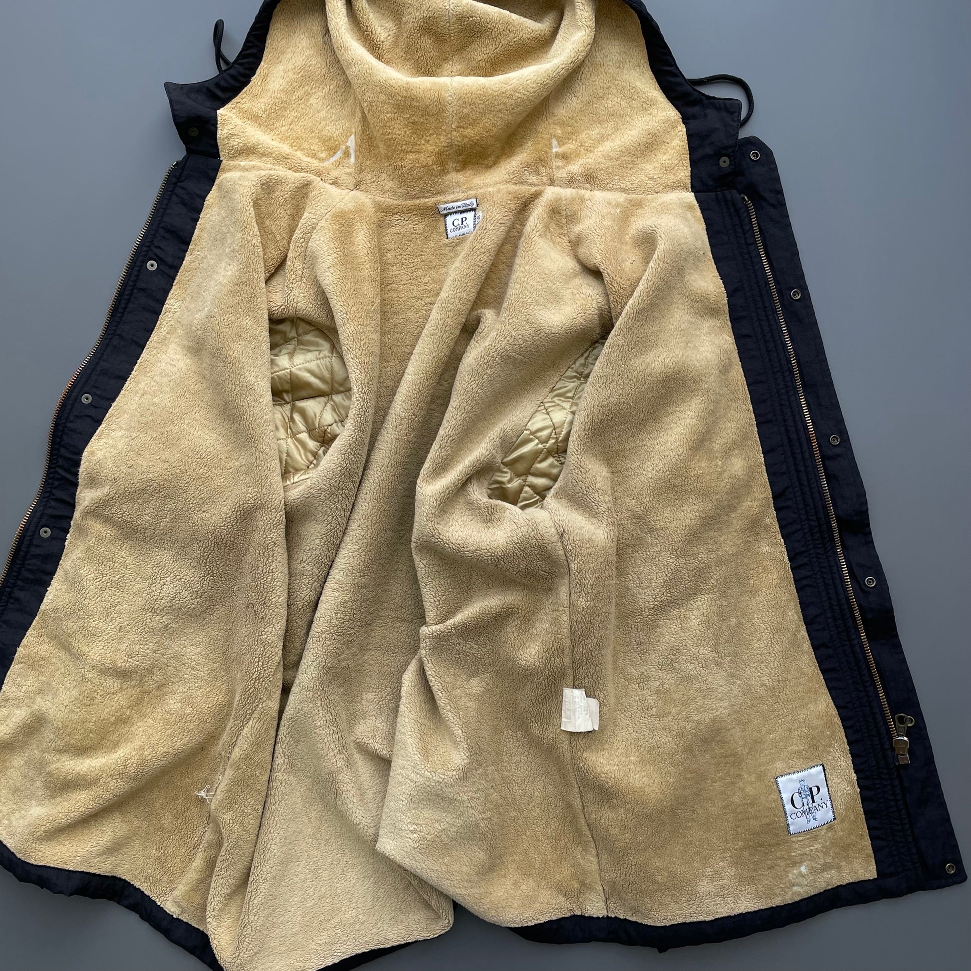 Excellent condition. Interior fleece has worn away in areas (pictured).