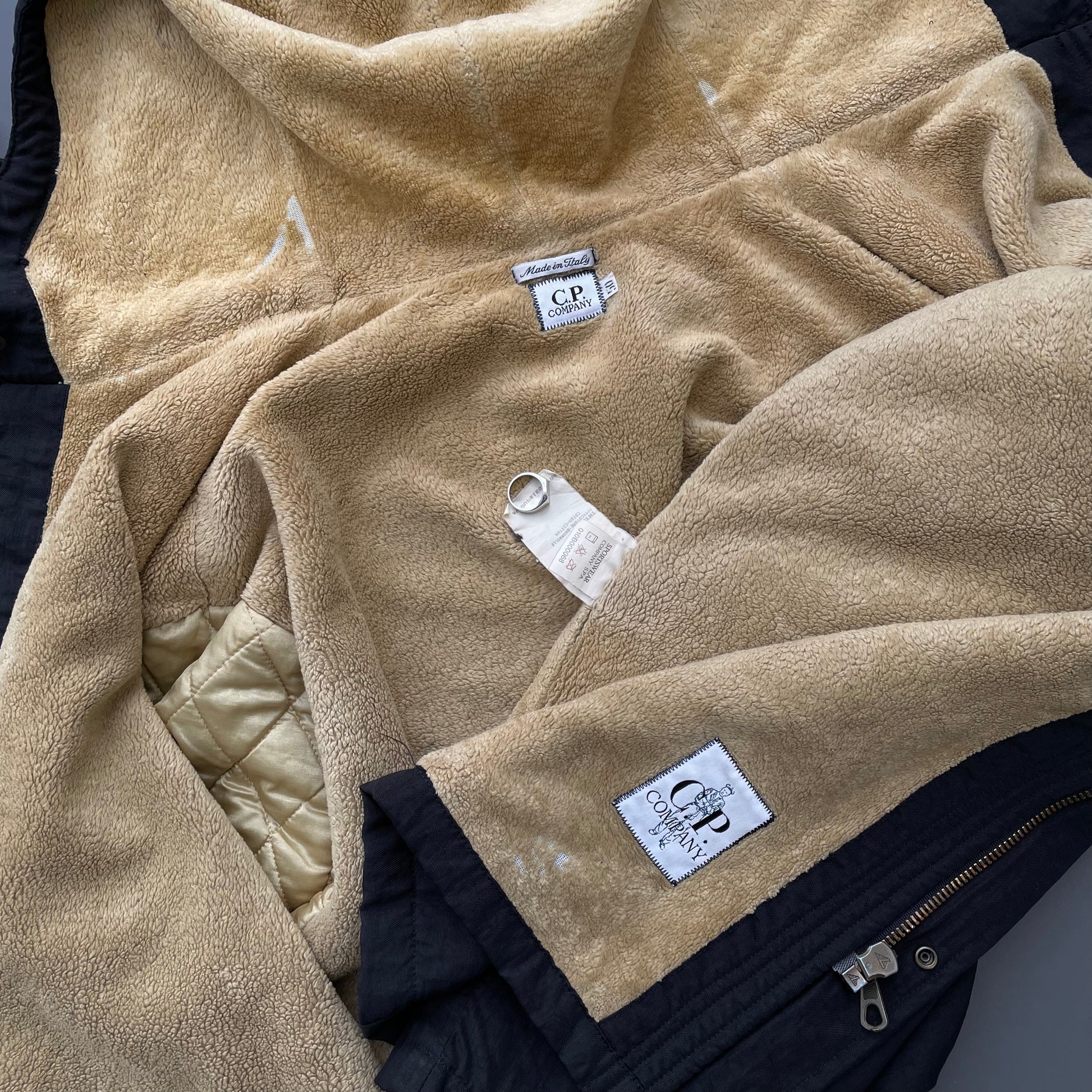 C.P. Company Black AW95 Nylon Fleece Lined Hooded Overcoat