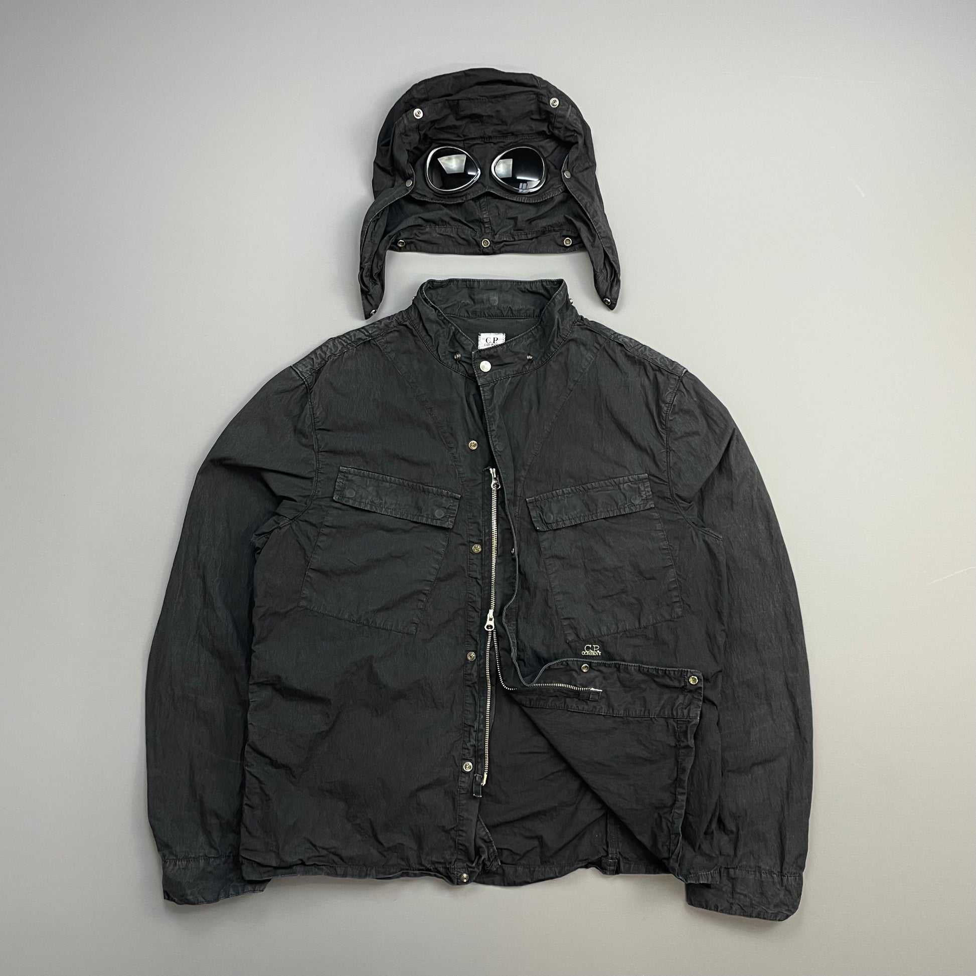 C.P. Company Black Cotton Detachable Hood Google Jacket