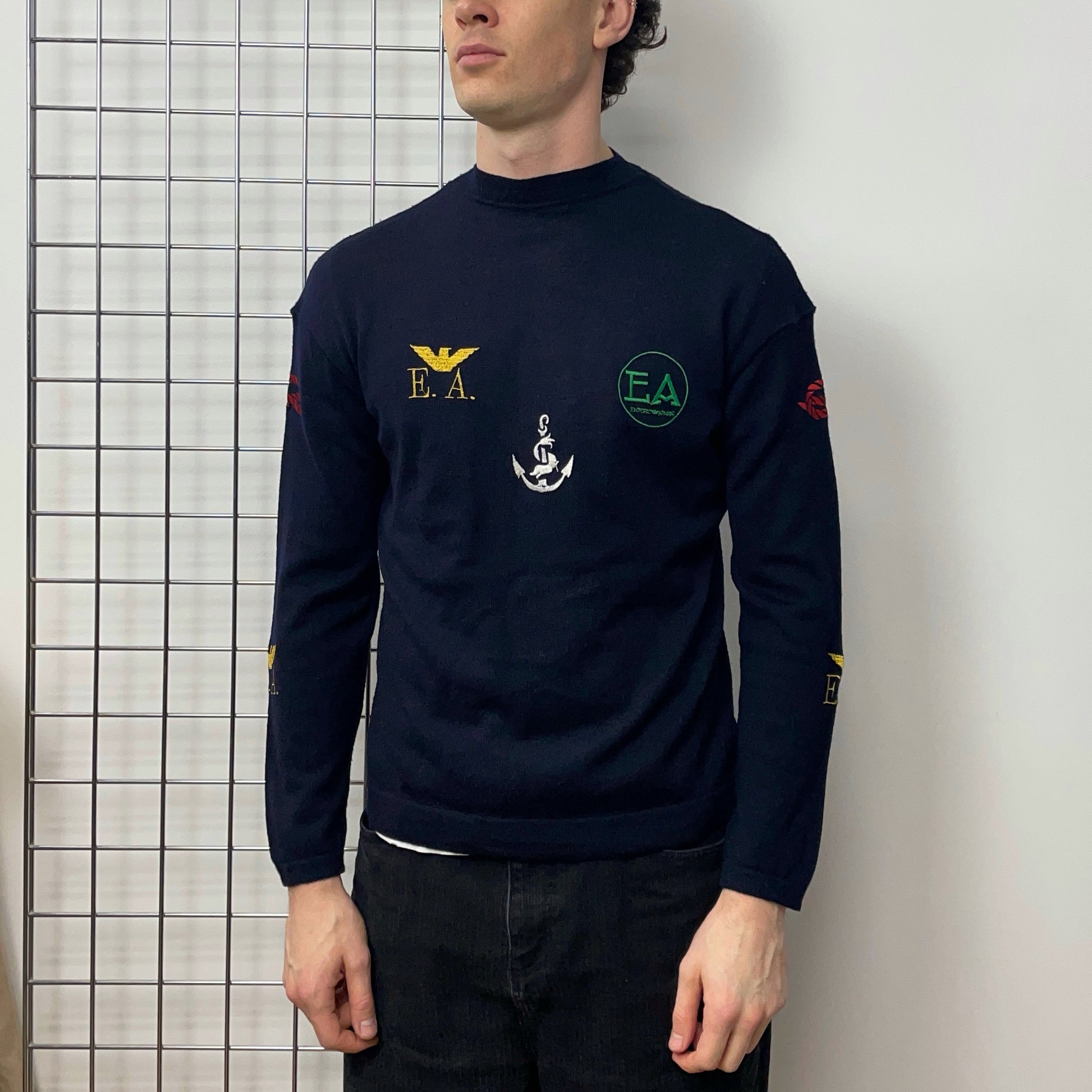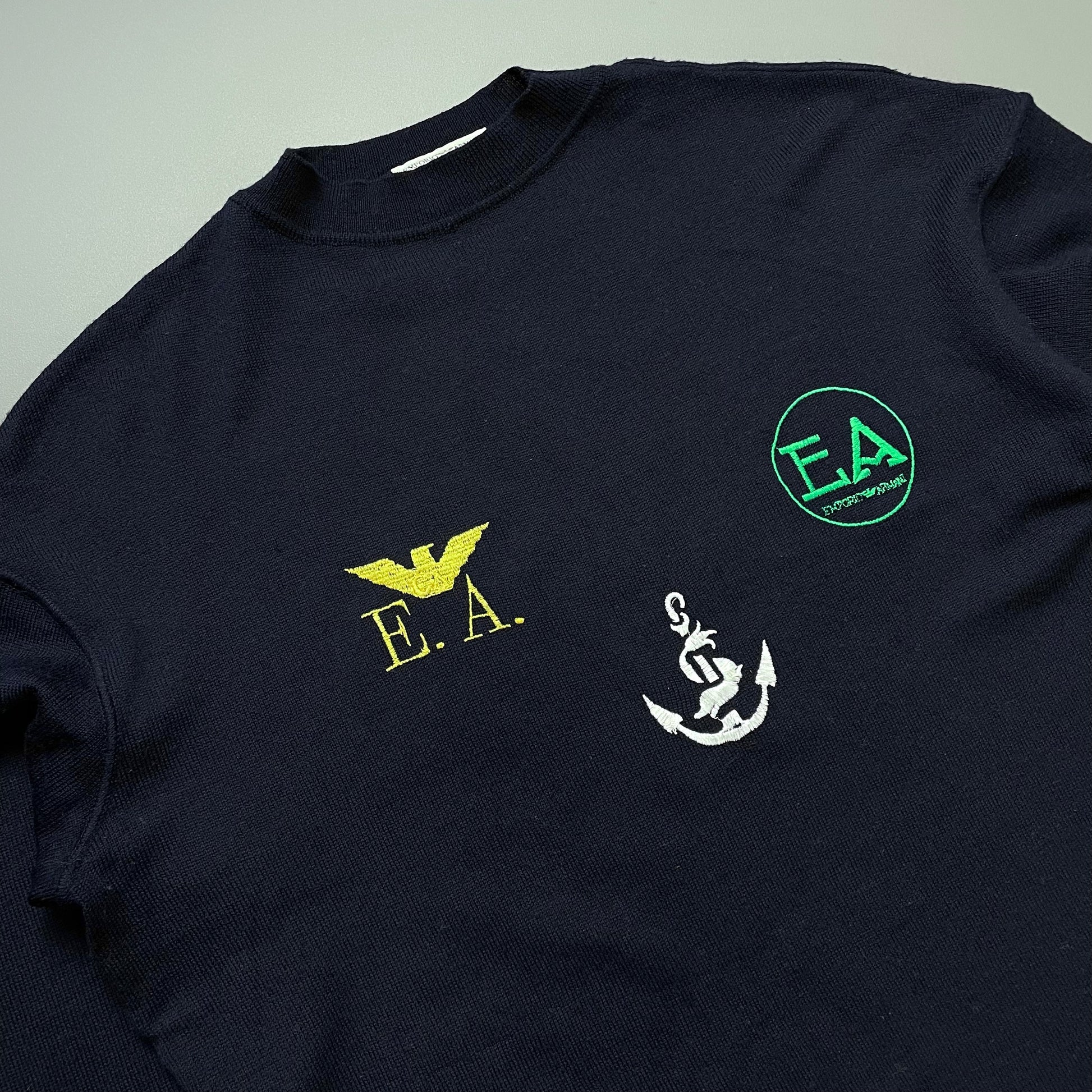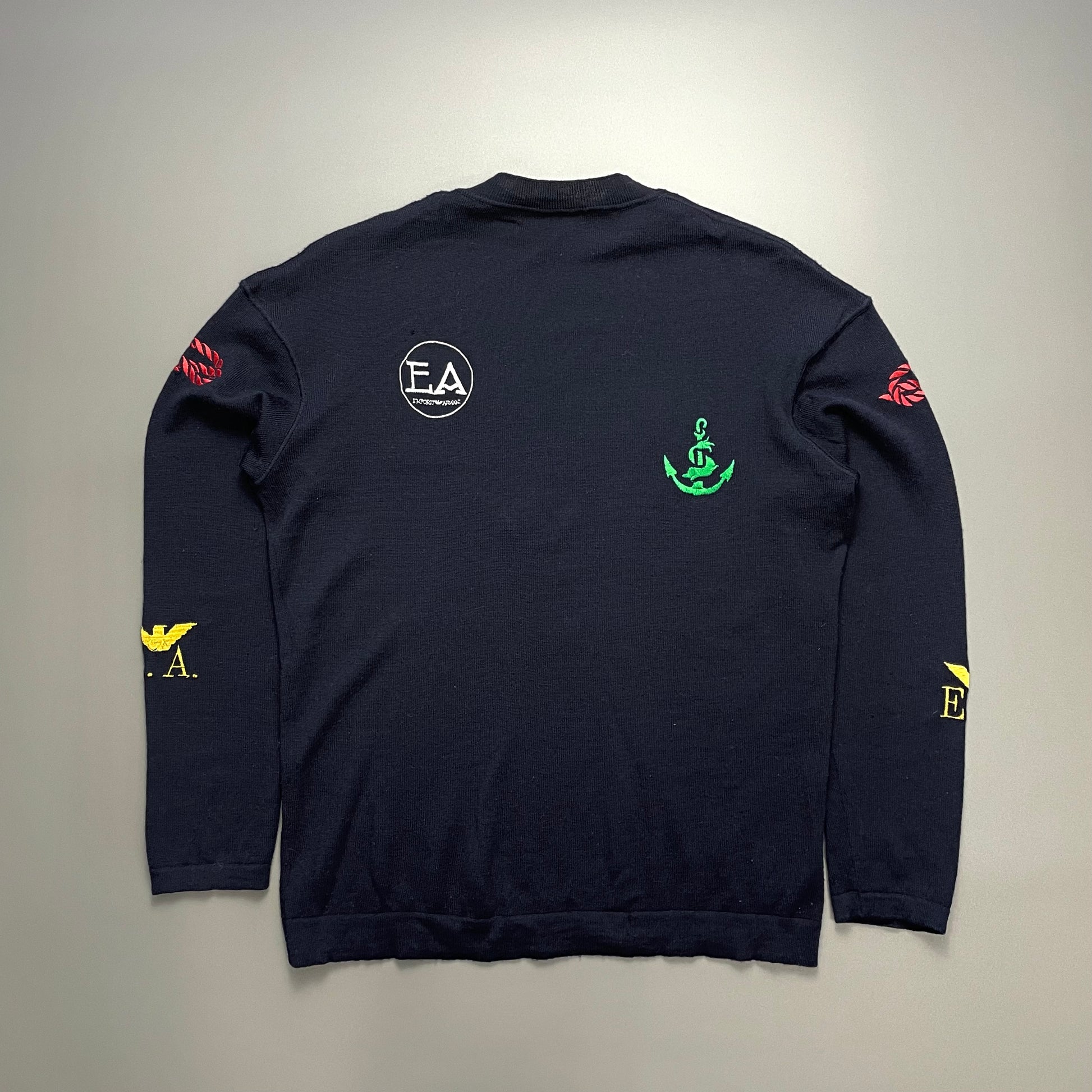 Emporio Armani Navy 90s Patch Logo Virgin Wool Knit Jumper