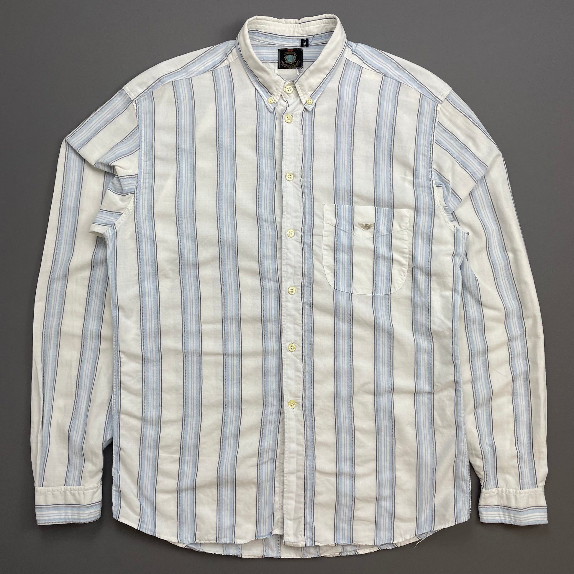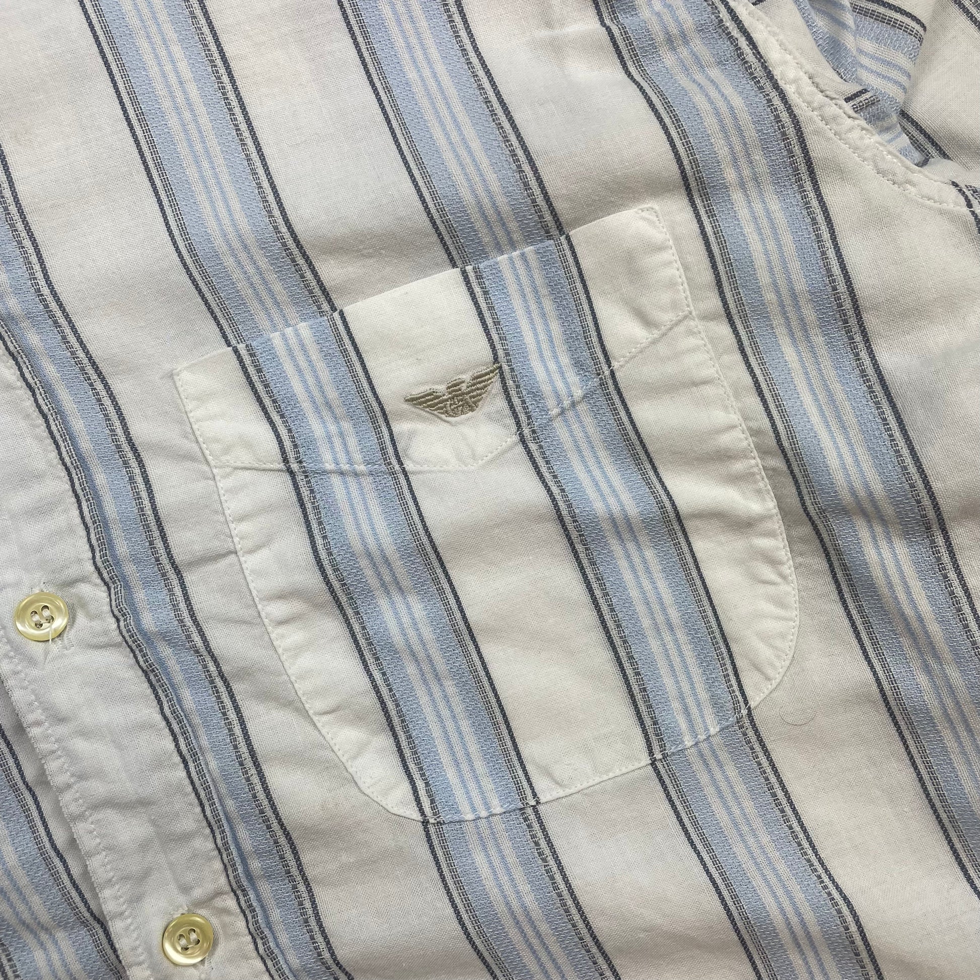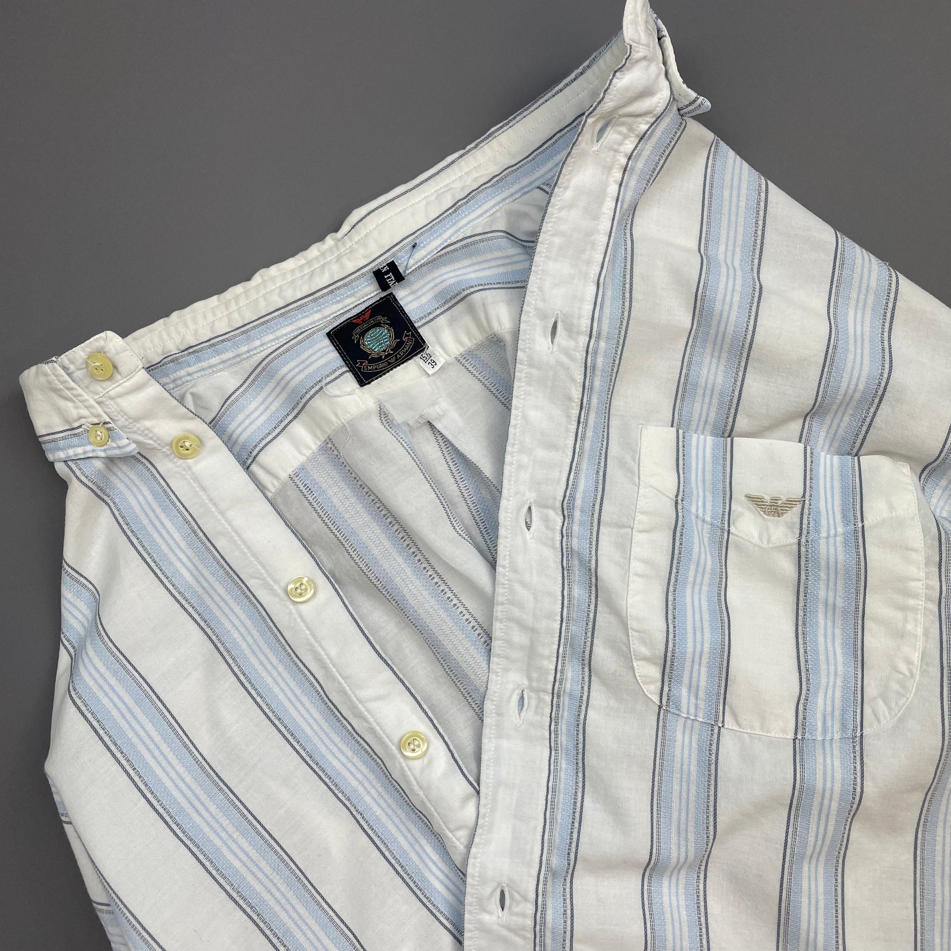 Emporio Armani White & Blue 80s Cotton Button-Through Pocket Shirt