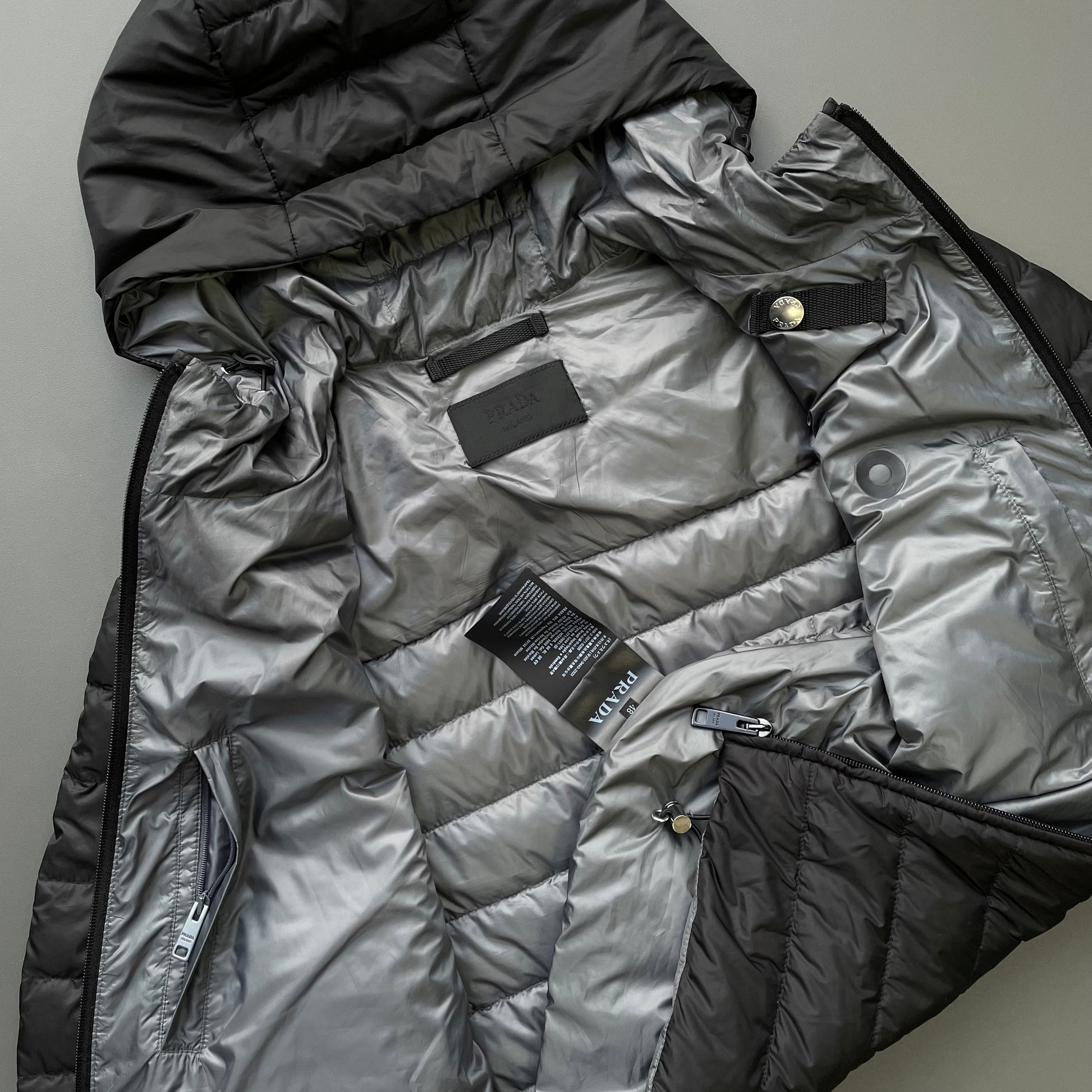 Prada Grey & Black 2019 Lightweight Goose Down Hooded Puffer Jacket
