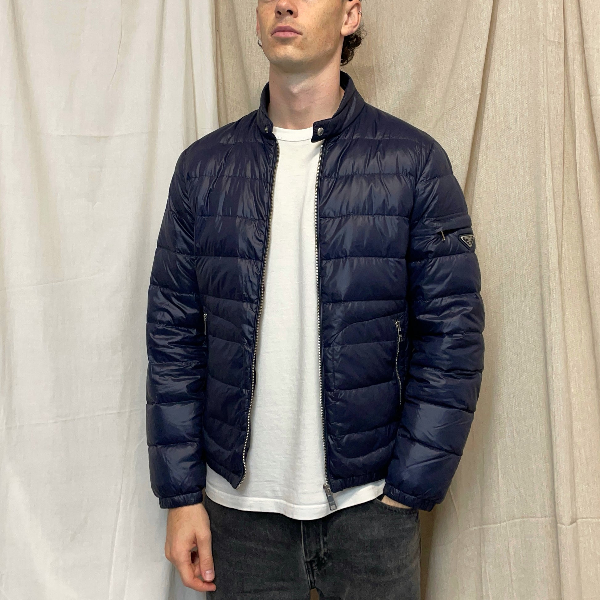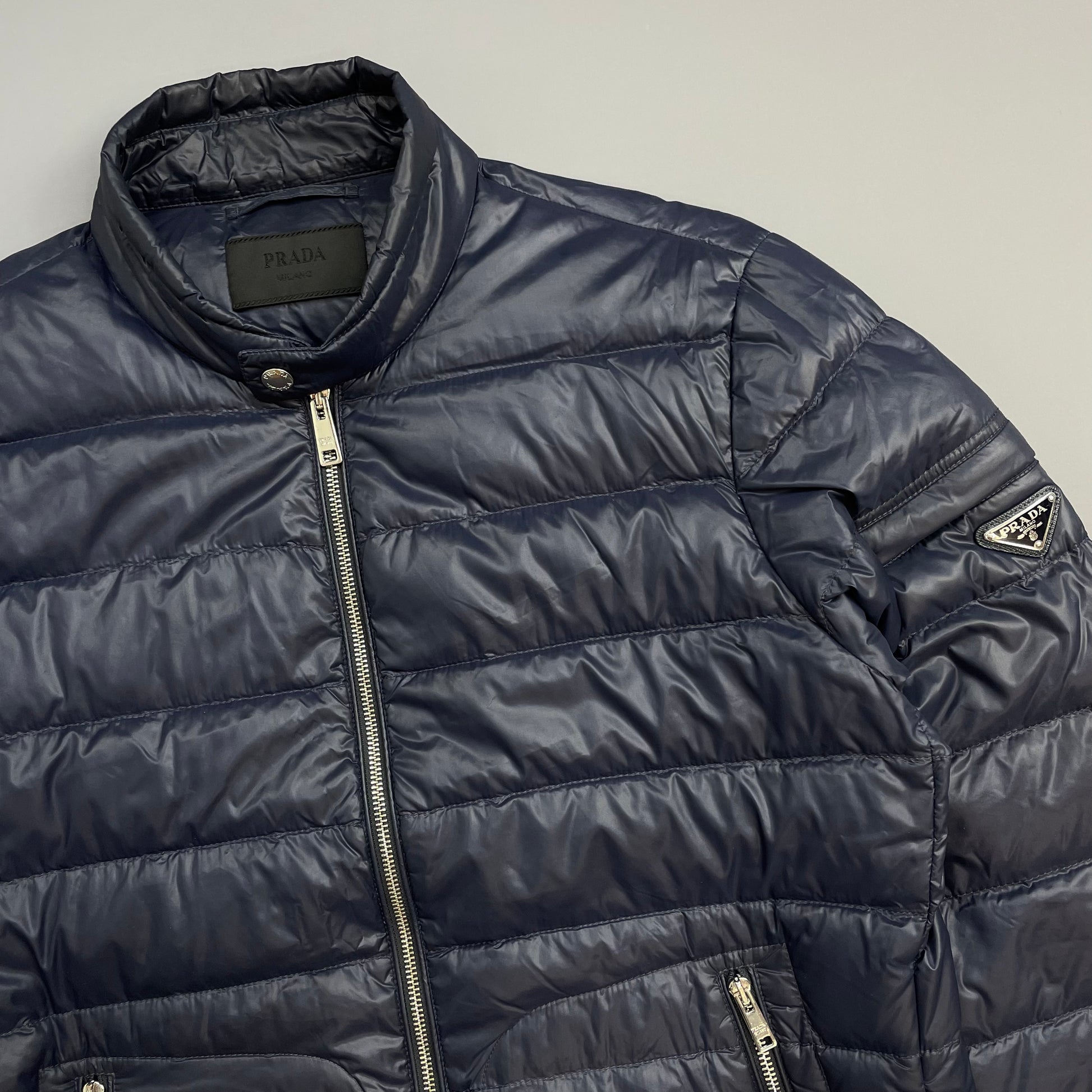 Prada Mainline Dark Blue 2018 Plaque Lightweight Biker Puffer Jacket