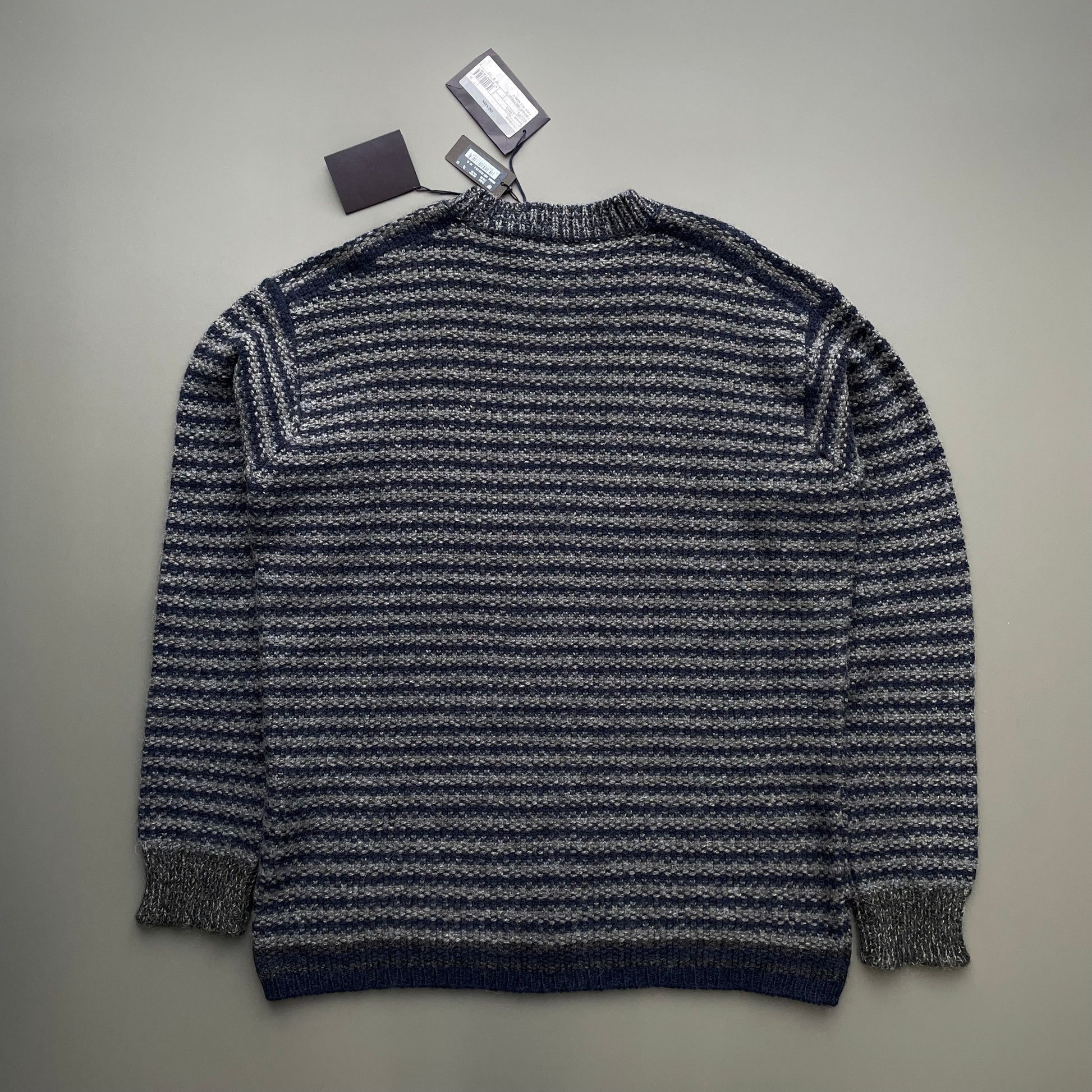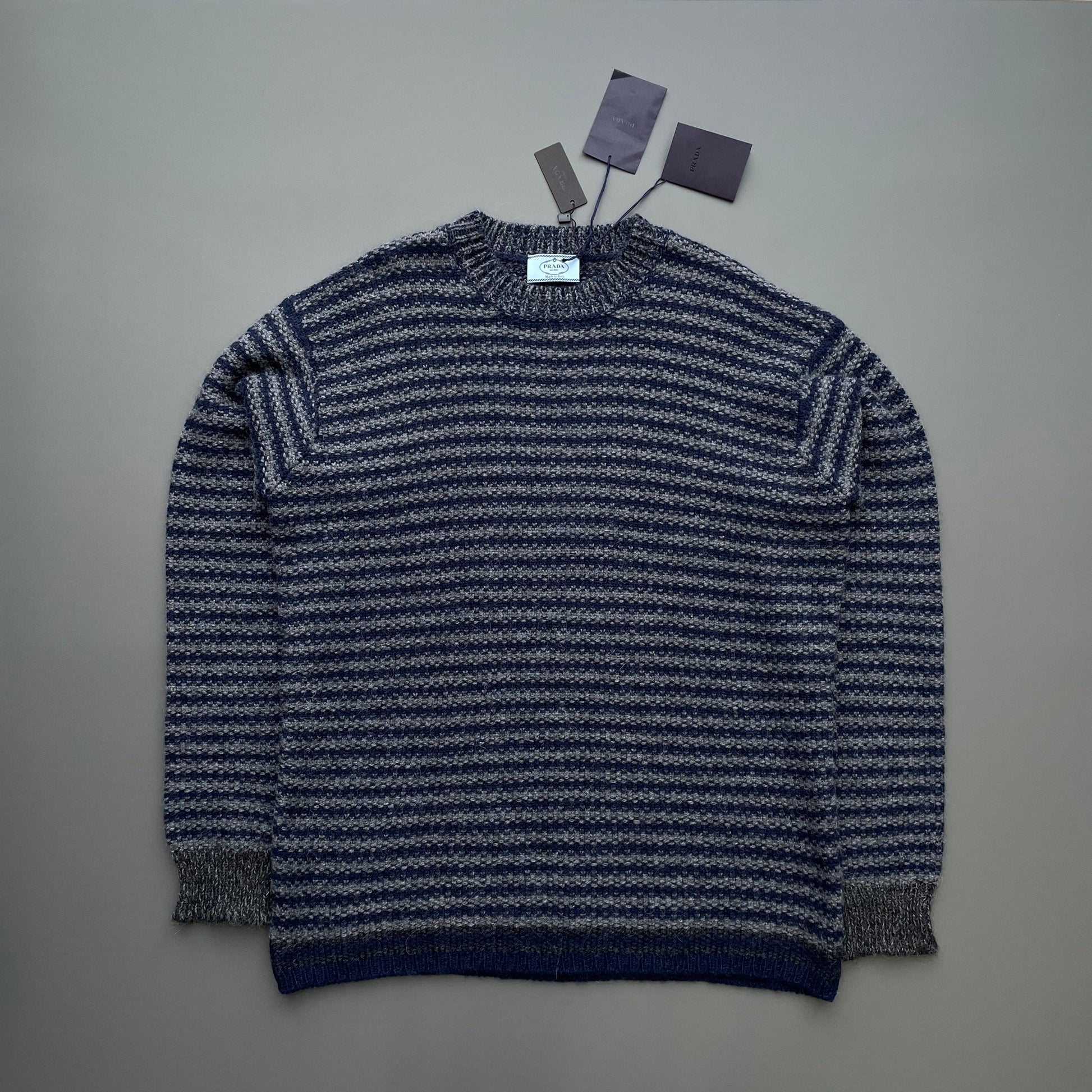 Prada Navy & Grey 2014 Alpaca Wool Chunky Knit Striped Jumper