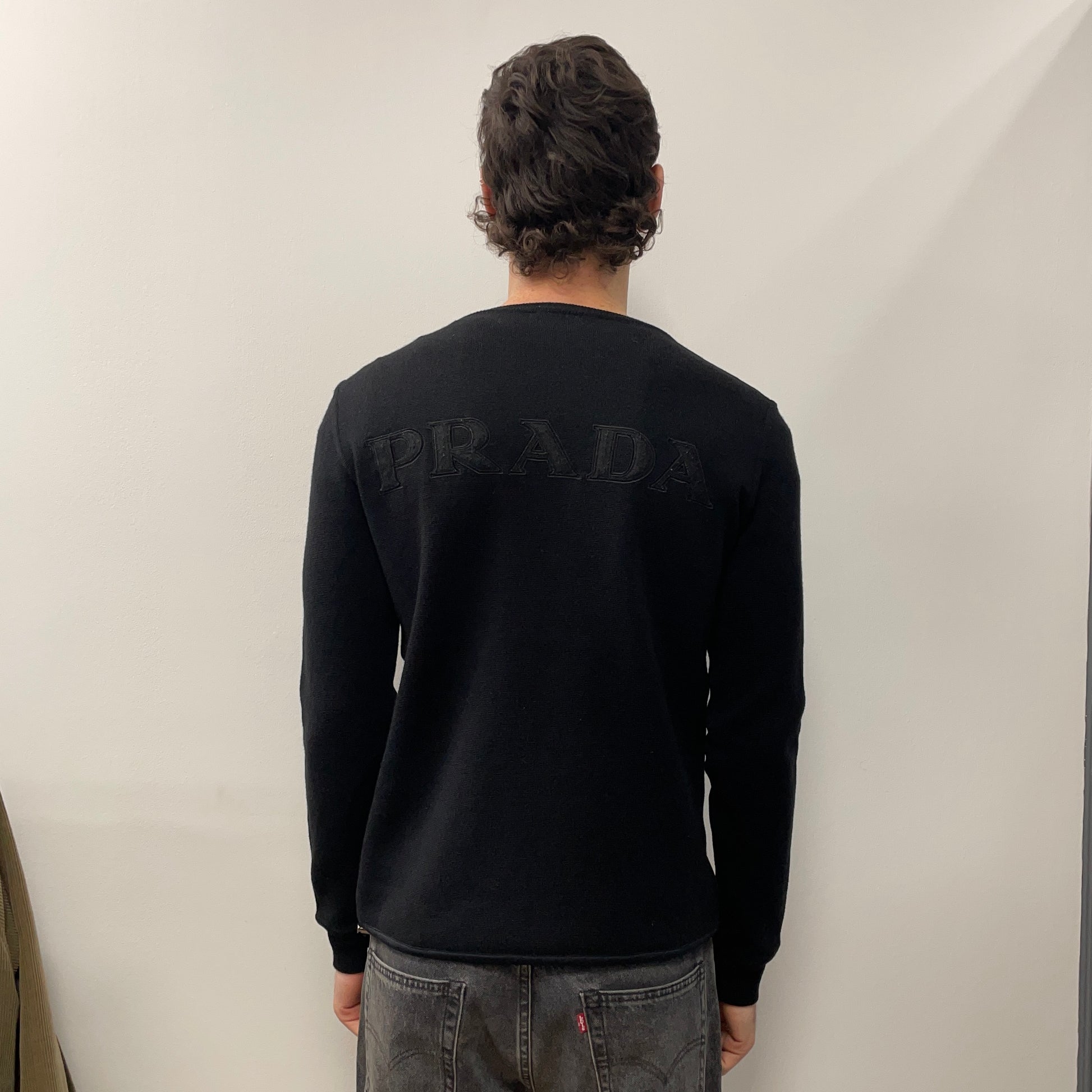 Prada Sport Black 2006 Spellout Technical Wool Knit Jumper