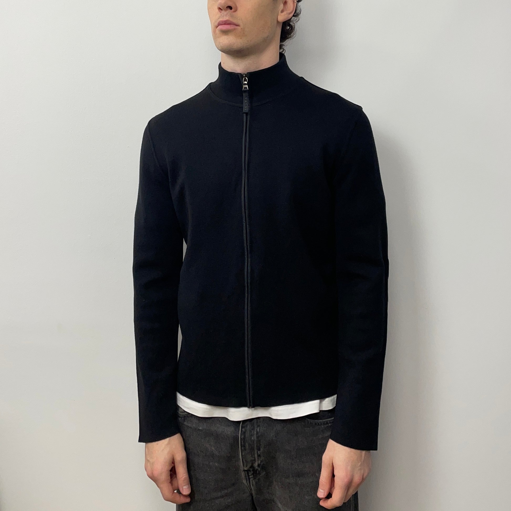 Prada Sport Black 2008 Wool Knit Nylon Panel Cardigan Jacket