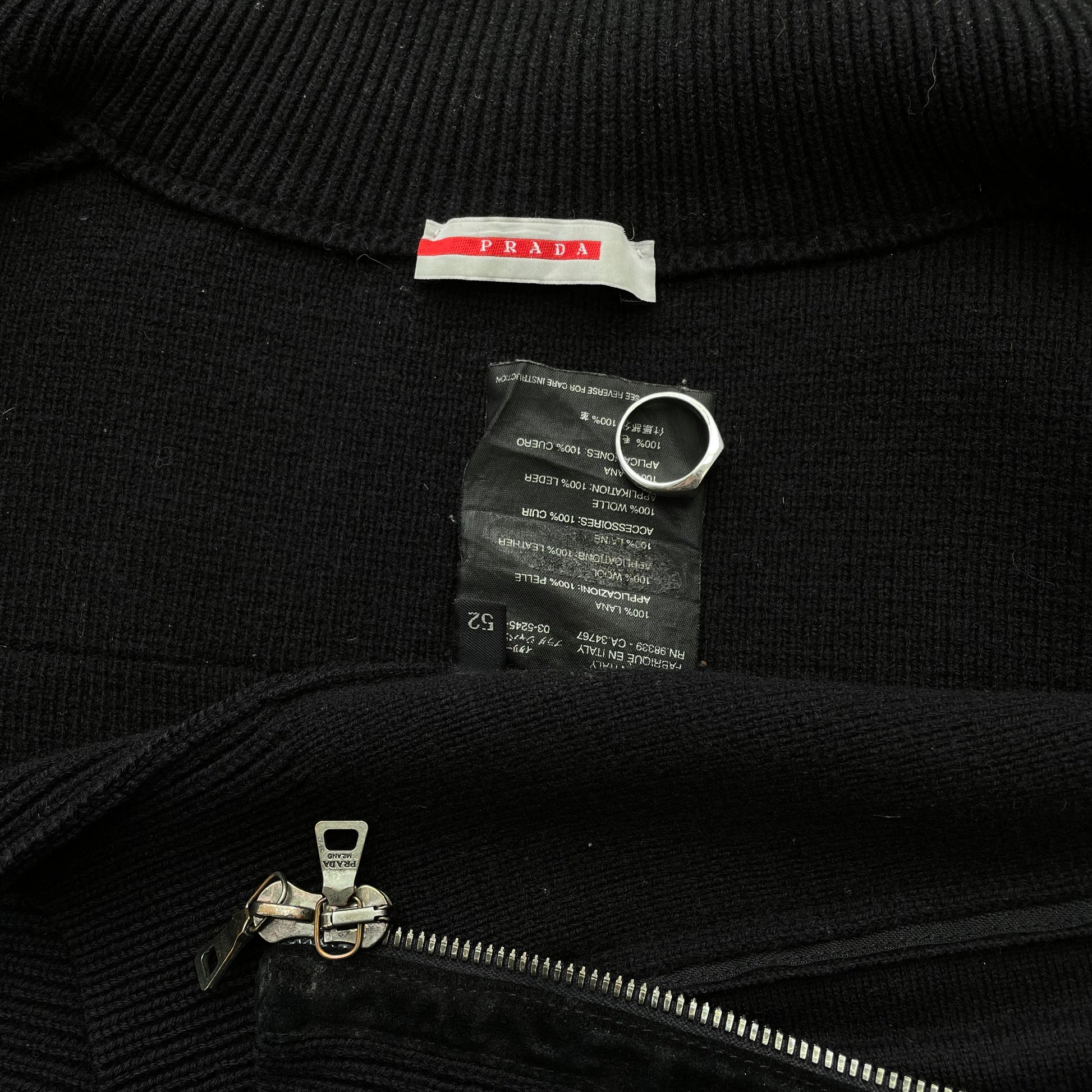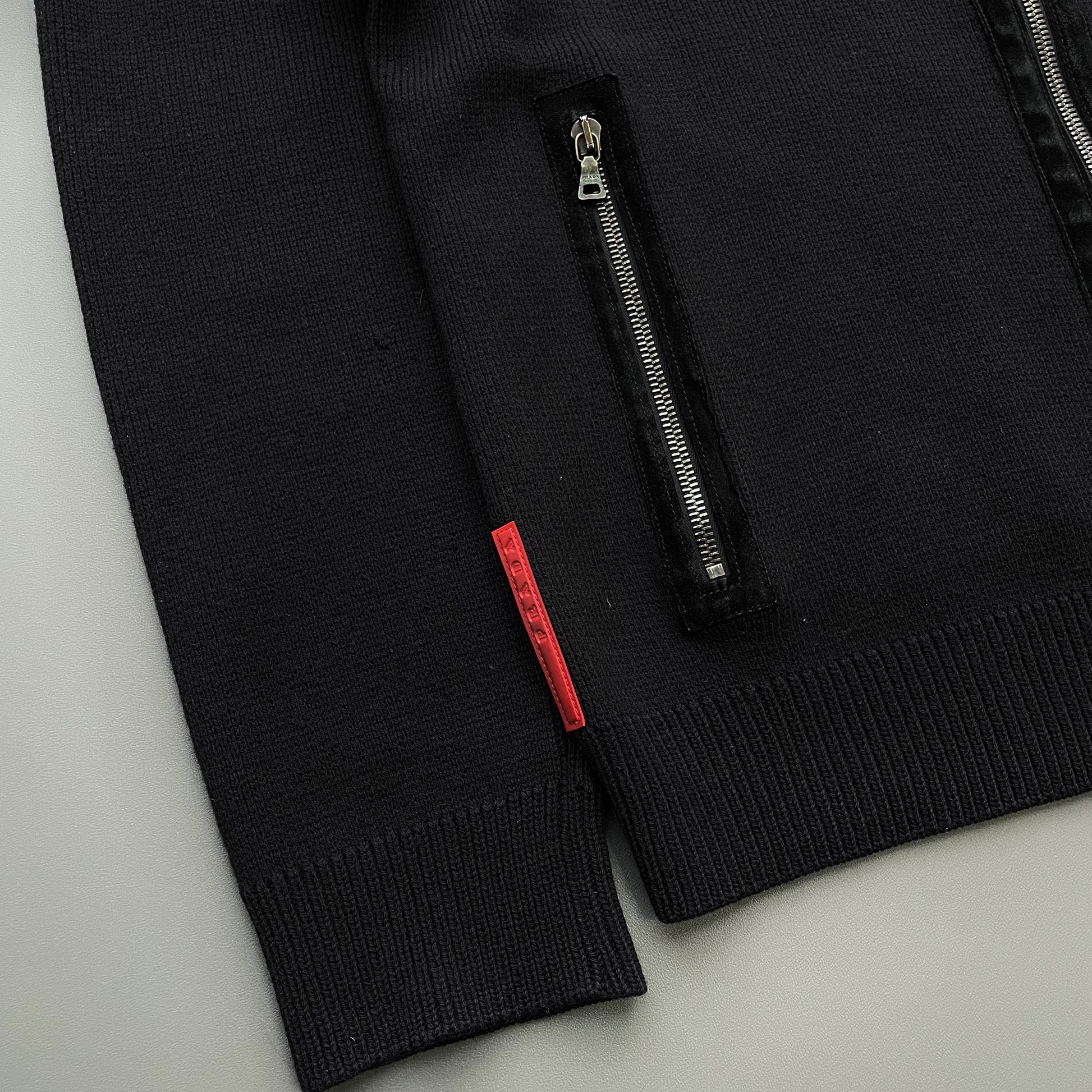 Prada Sport Deep Purple & Black 00s Leather Suede Wool Knit Jacket