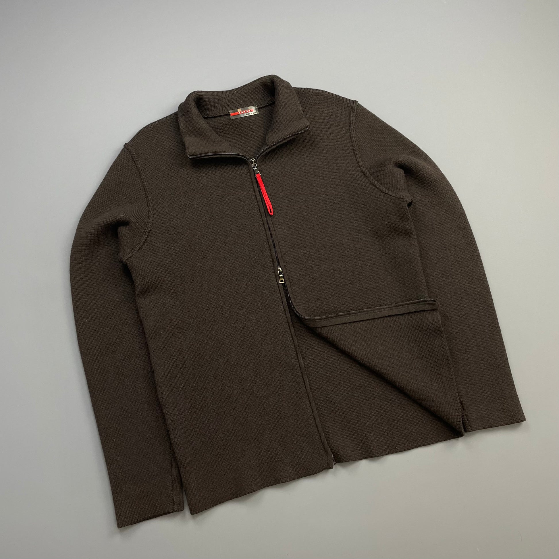 Prada Sport Khaki Brown 00s Zip-Through Wool Knit Cardigan Jacket