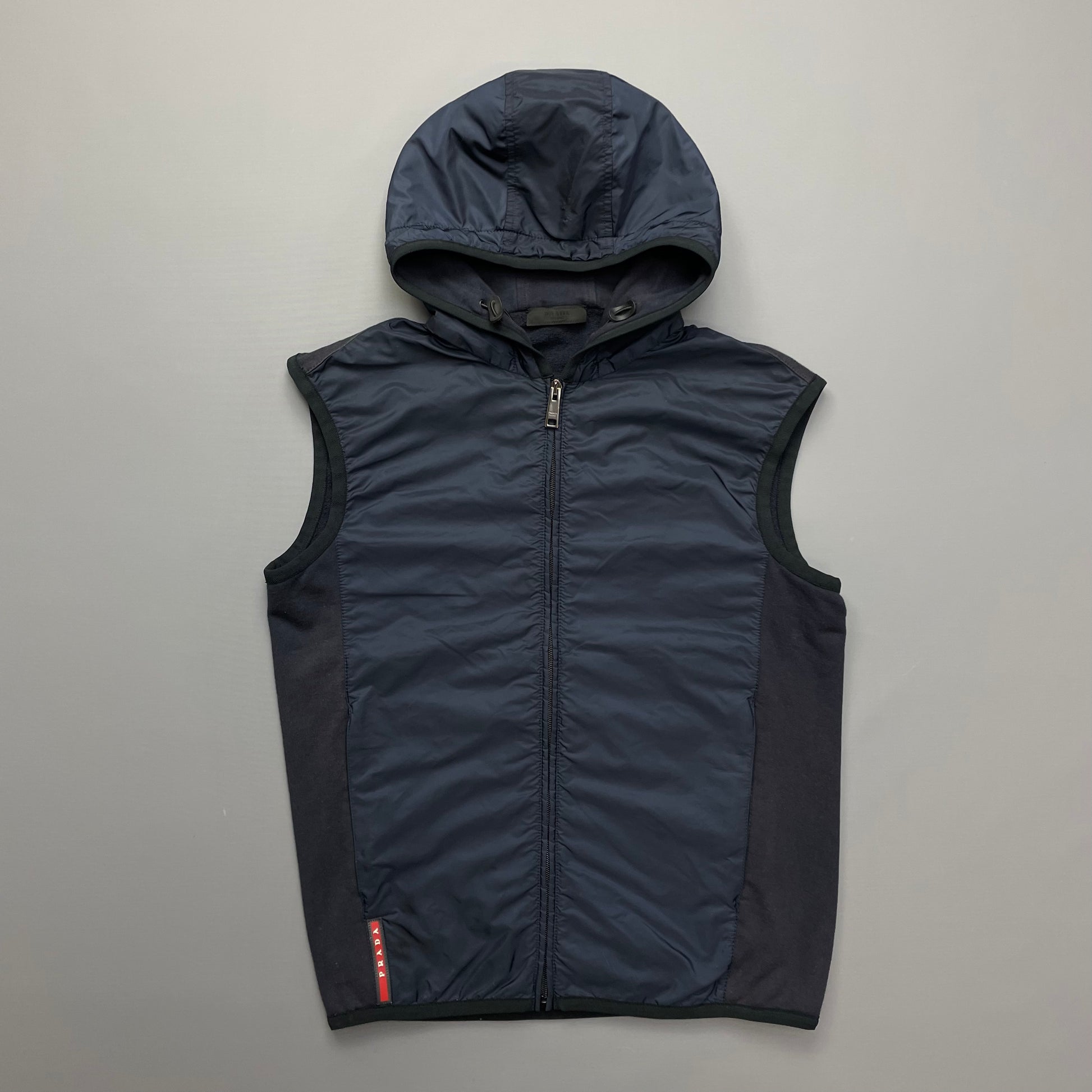 Prada Sport Navy Nylon Hooded Gilet Vest 2017