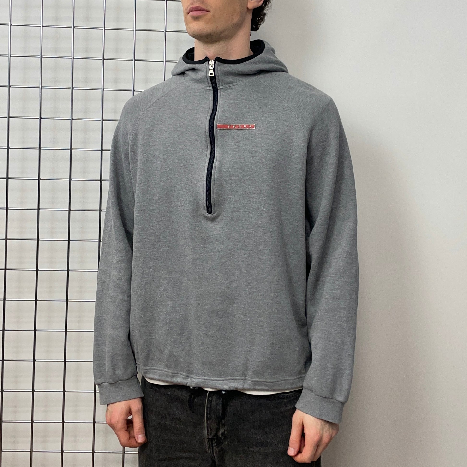 Prada Sport Sailing Team Grey Half-Zip Pullover Smock Hoodie