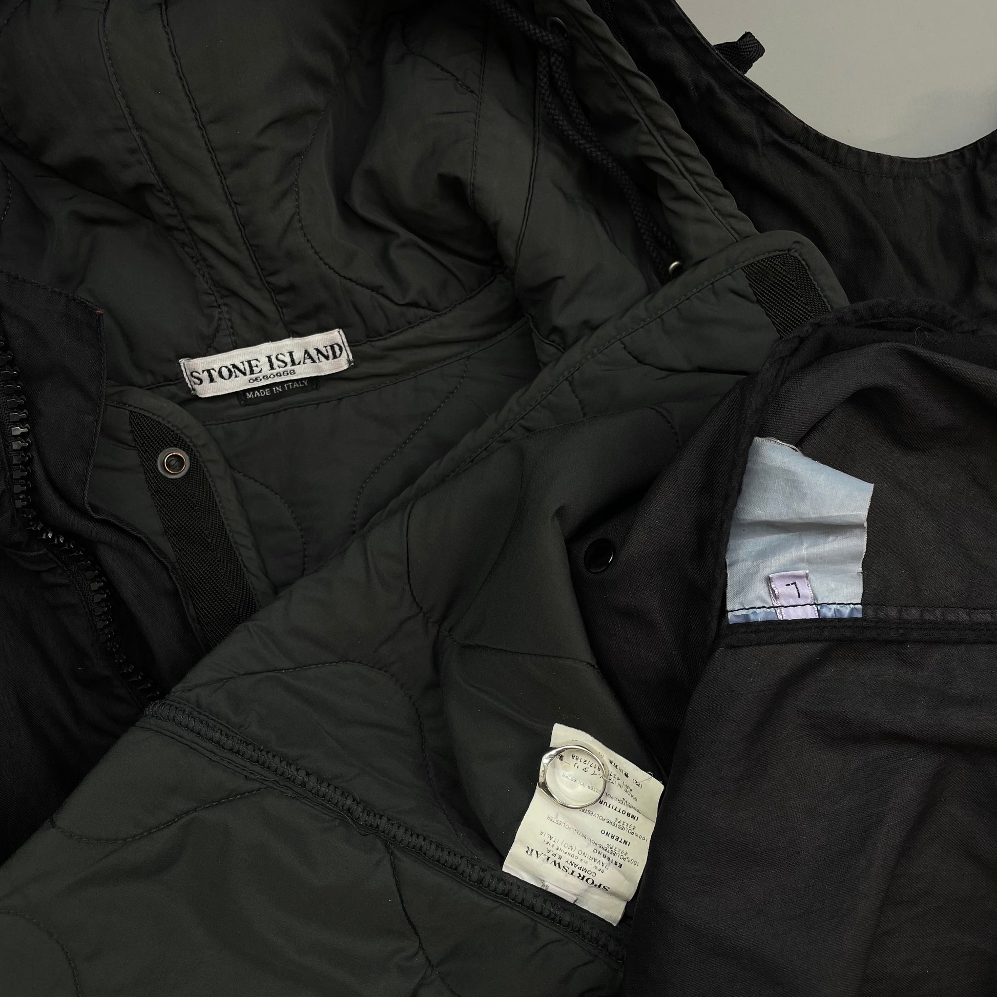Stone Island Black AW05 Asymmetrical Zip Dutch Rope Lined Hooded Jacket