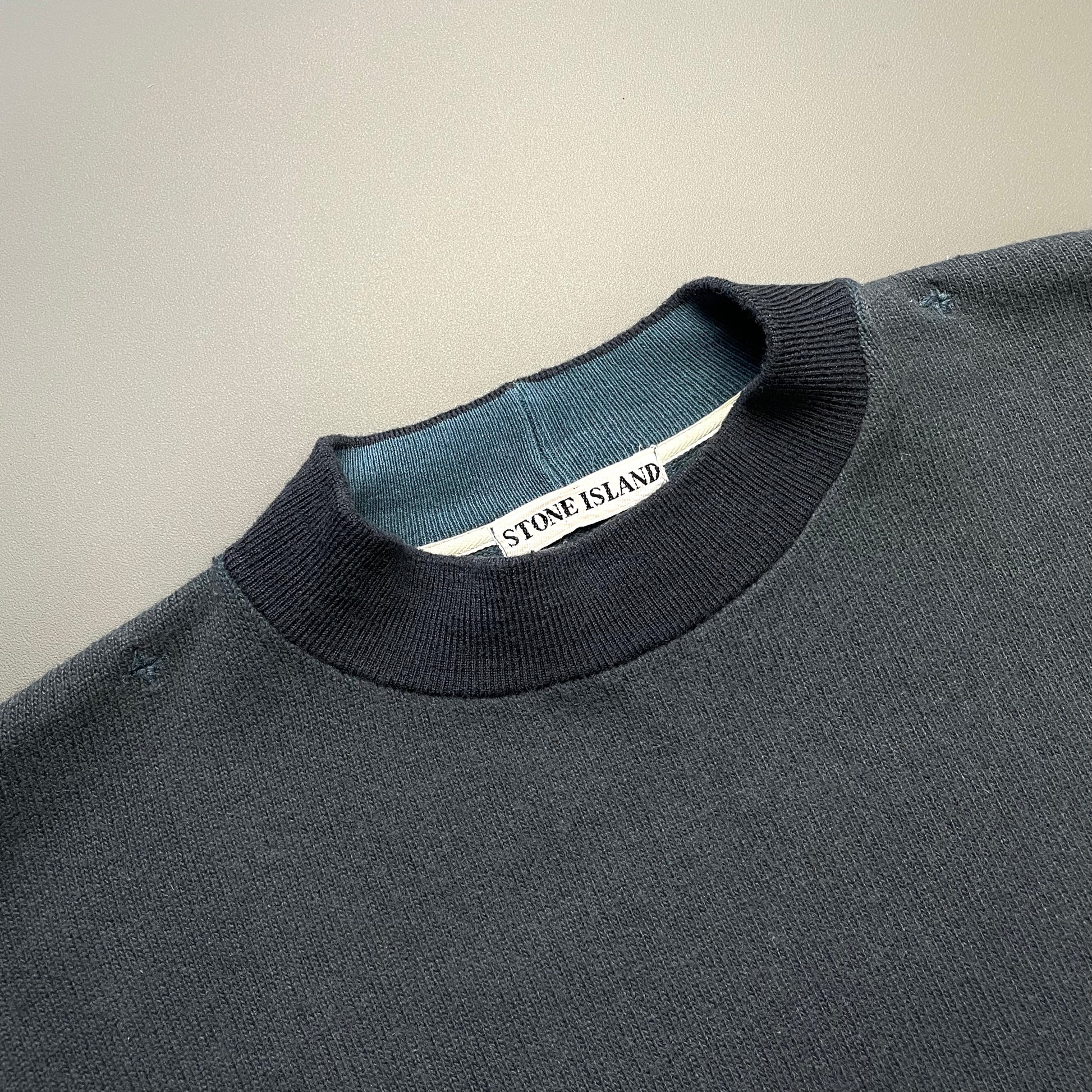 Stone Island Blue 80s Two-Tone Wool Blend Embroidered Jumper