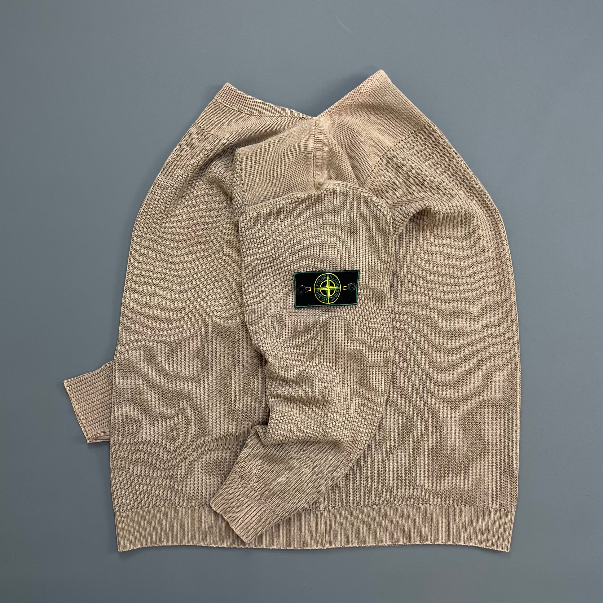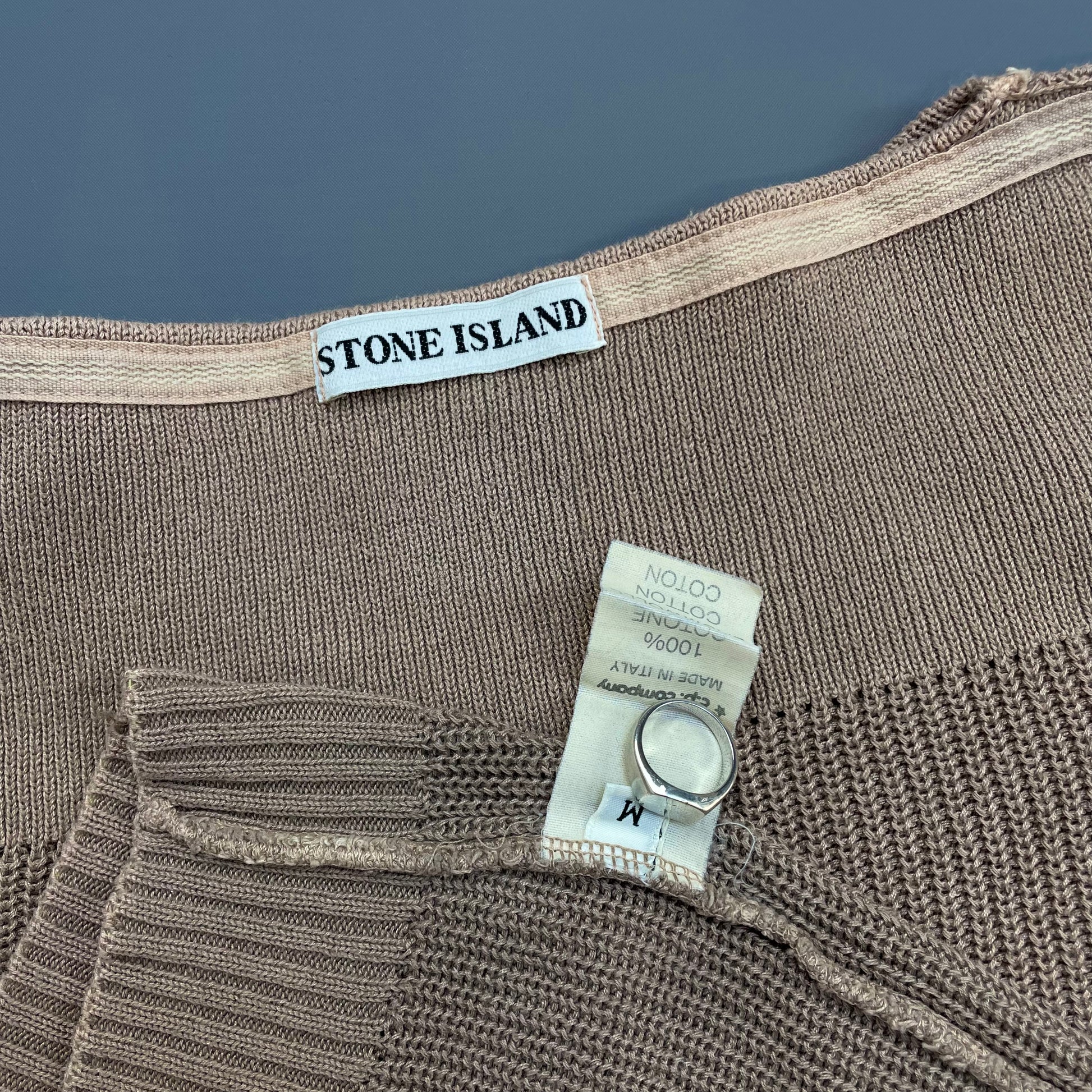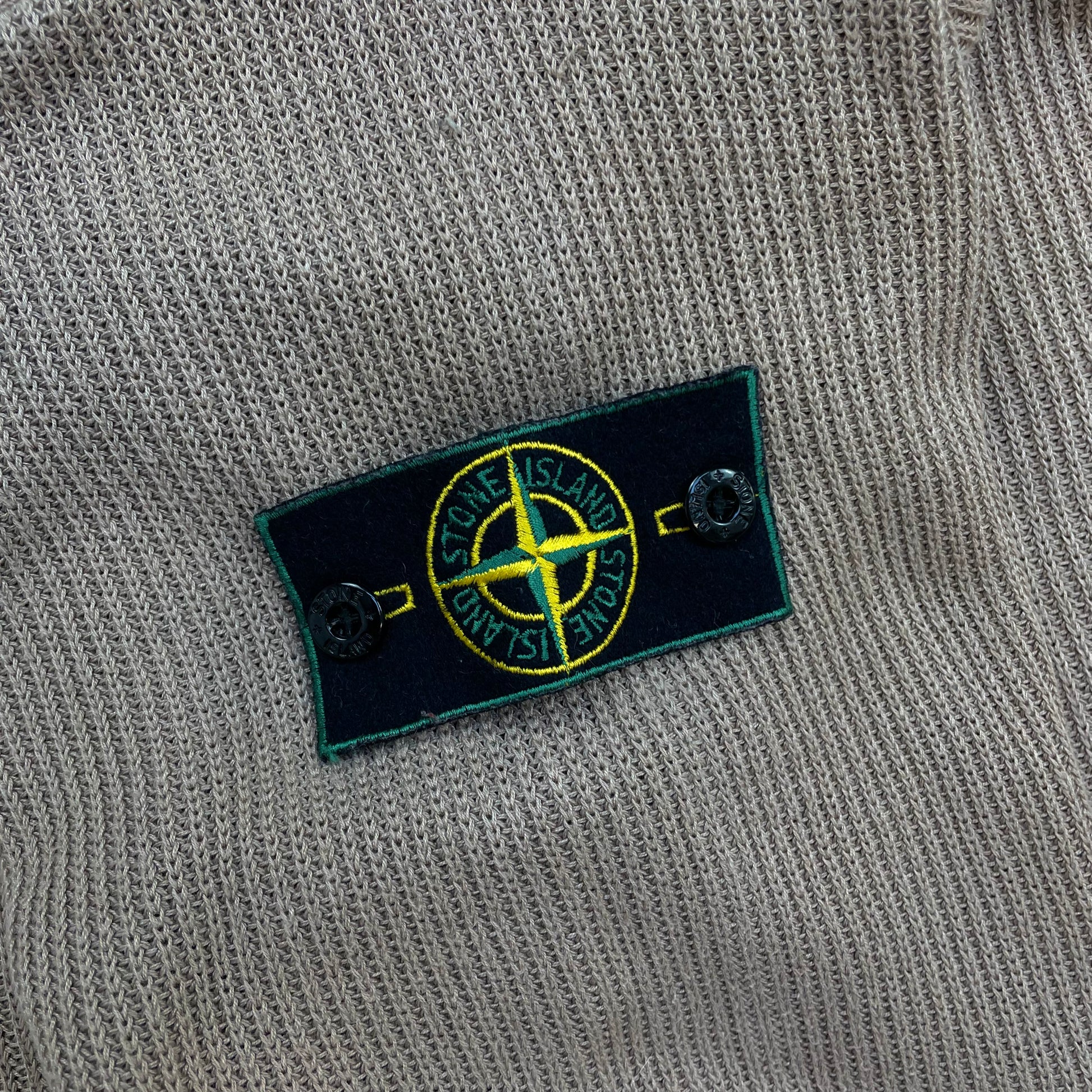 Stone Island Brown 1980s Boat Neck Green Edge Badge Ribbed Knit Jumper