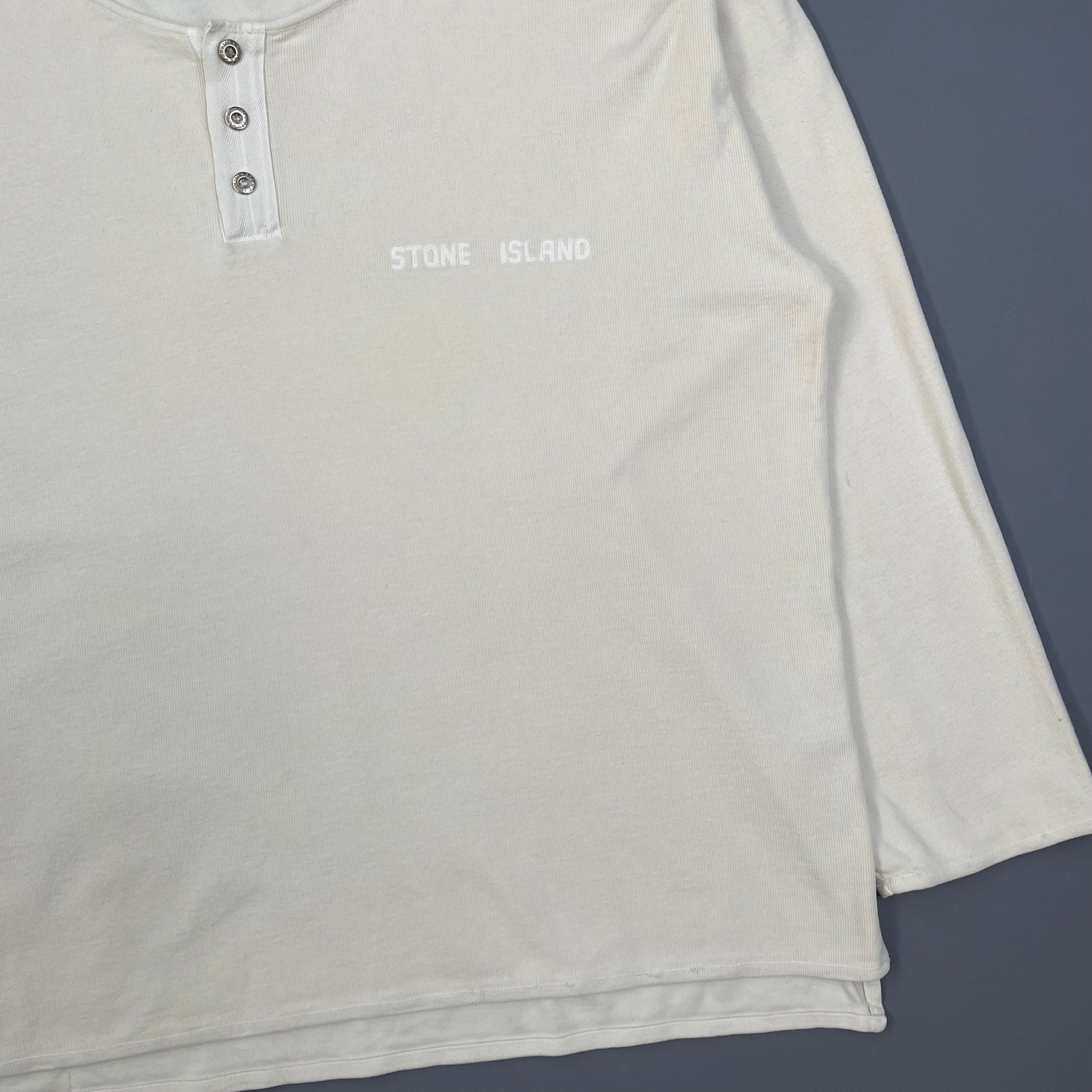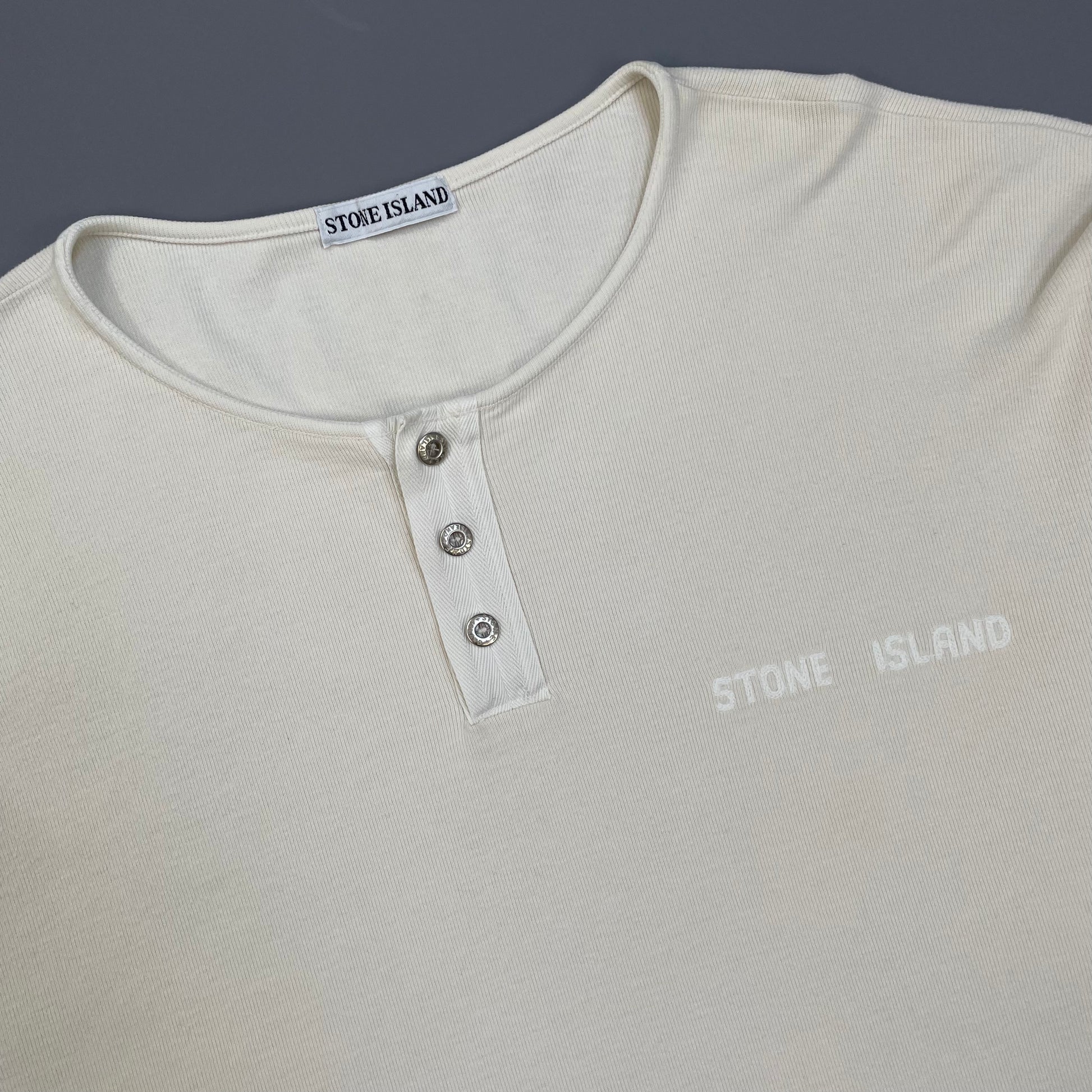 Stone Island Cream 80s Silver Button-Up Fine-Rib Cotton Jumper