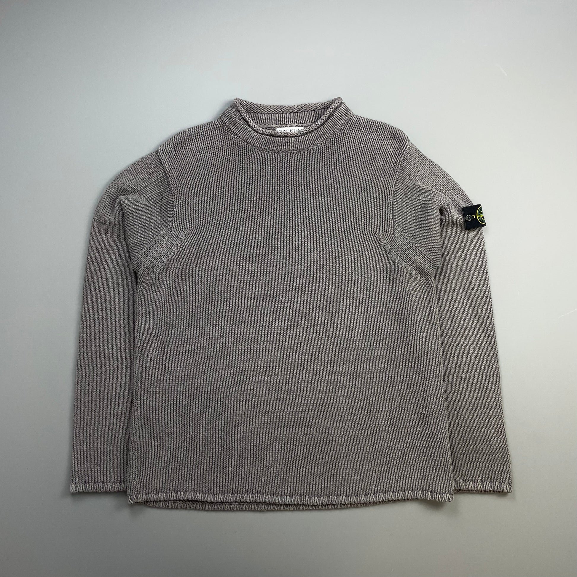 Stone Island Grey SS00 Heavyweight Raw-Edge Collar Knit Jumper
