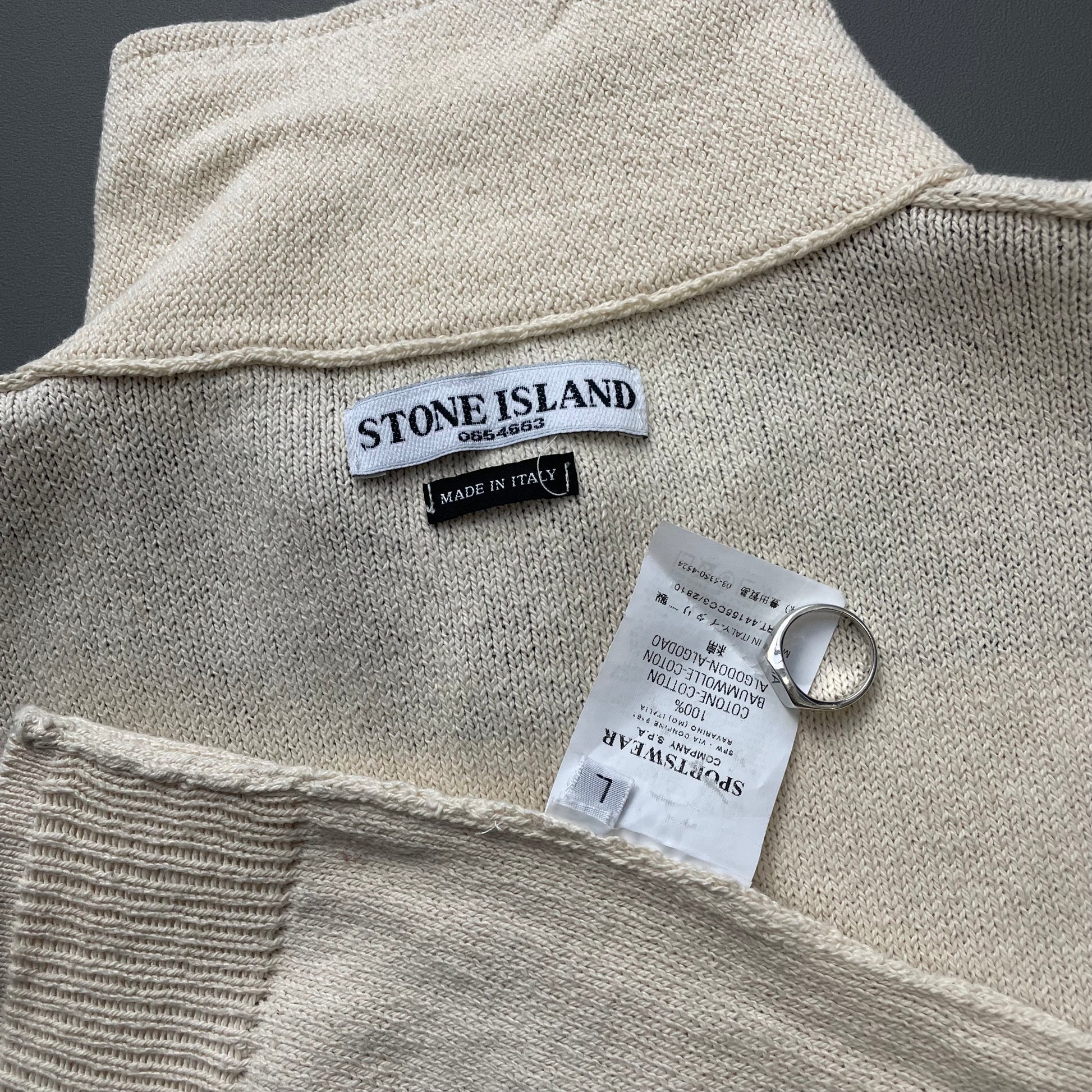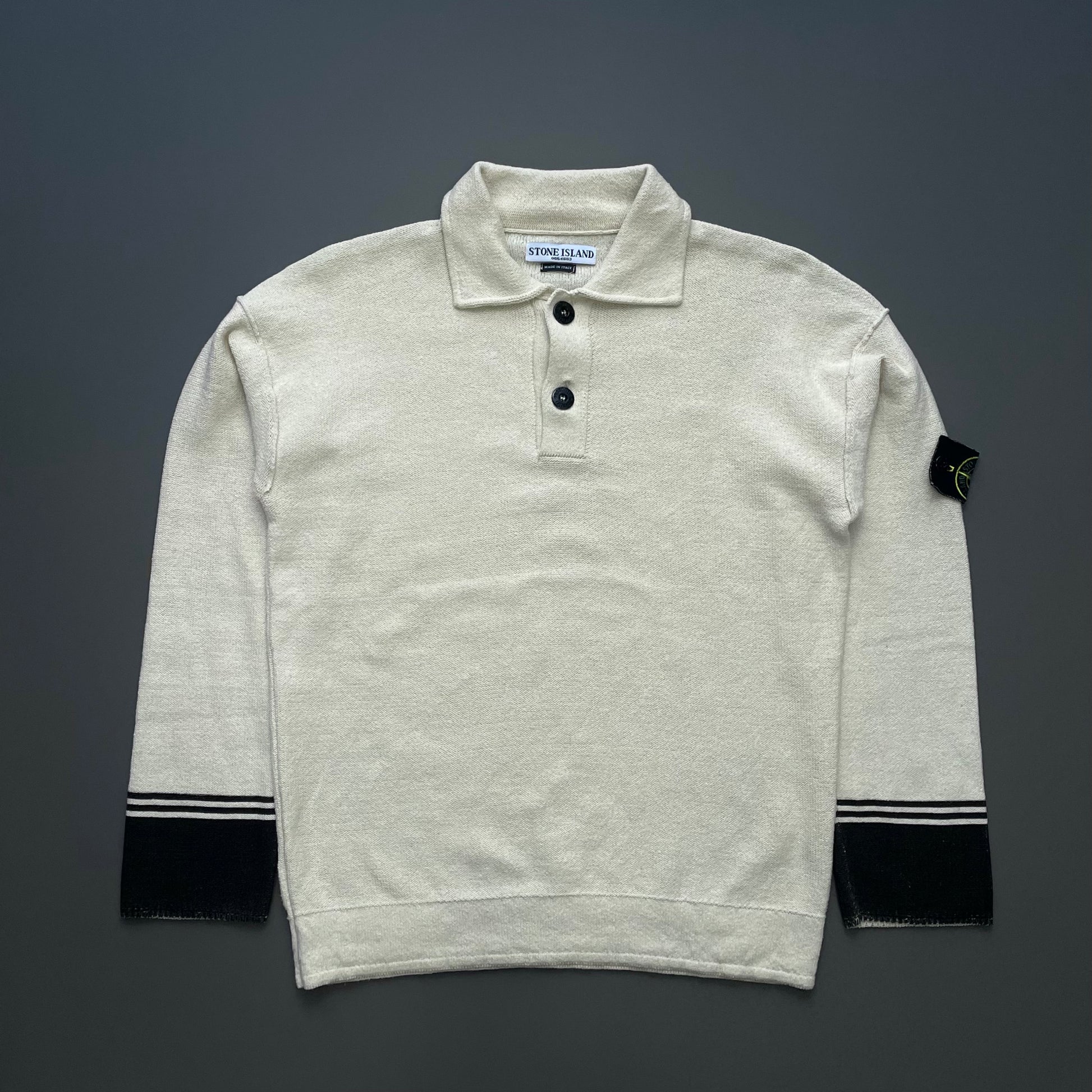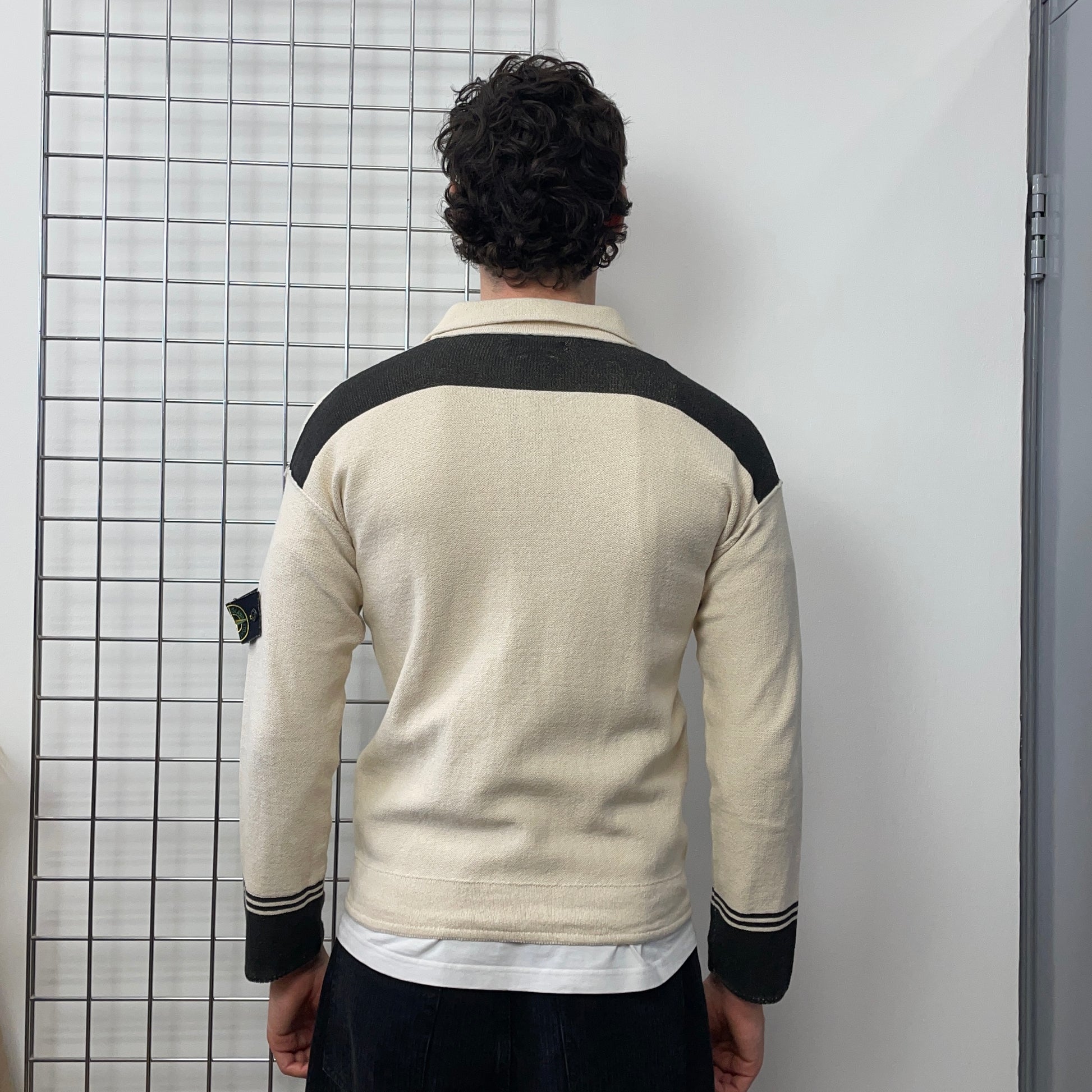 Stone Island Cream SS06 Panelled Half-Button Knit Jumper