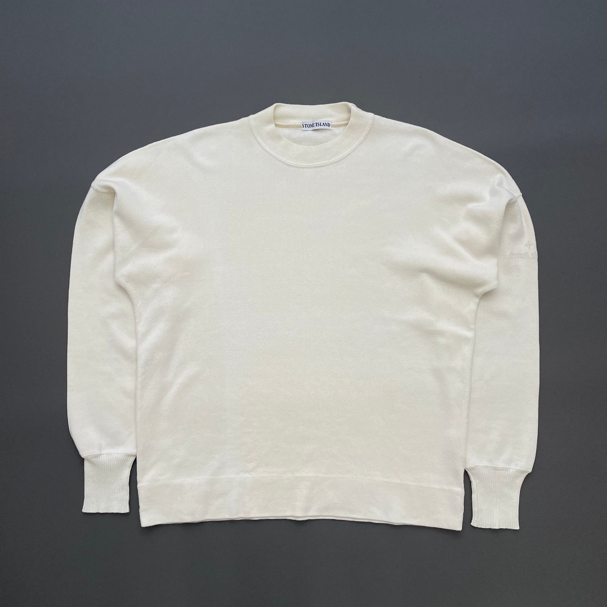 Stone Island Cream White 80s Japan Release Ideas From Massimo Osti Minimalistic Spellout Jumper