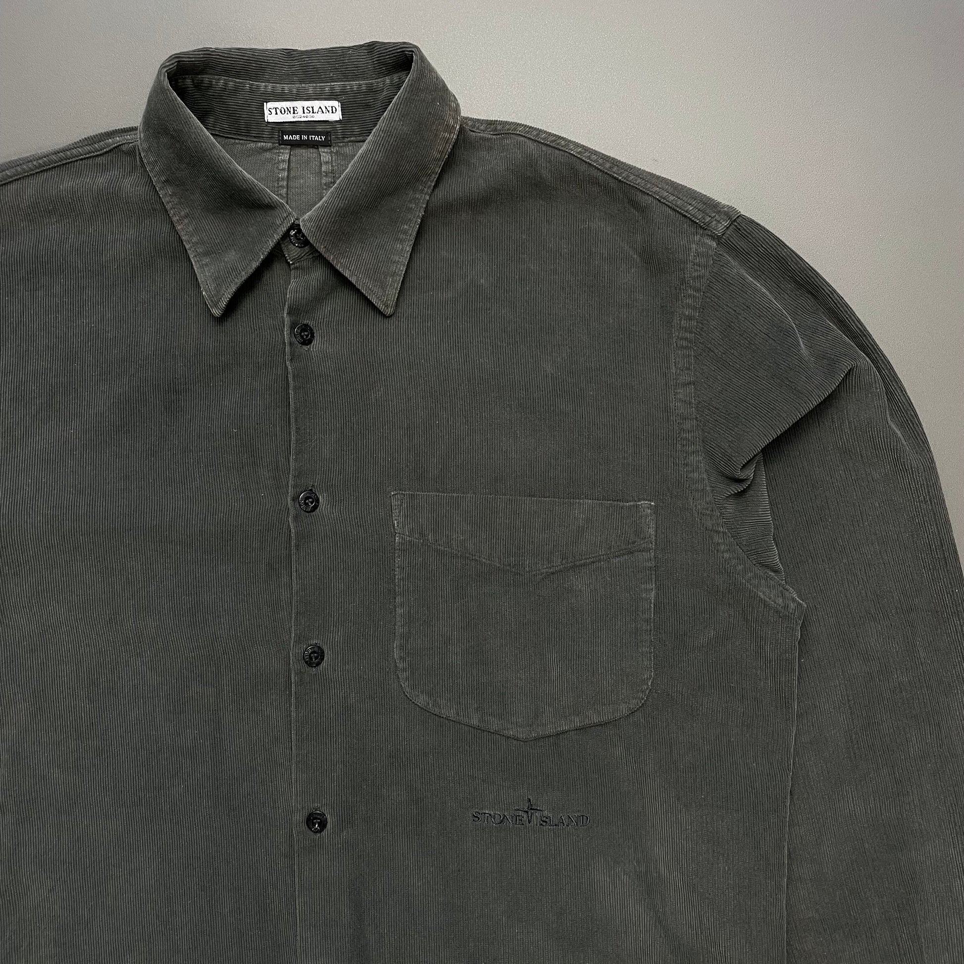 Stone Island Dark Grey AW03 Fine Cord Spellout Shirt