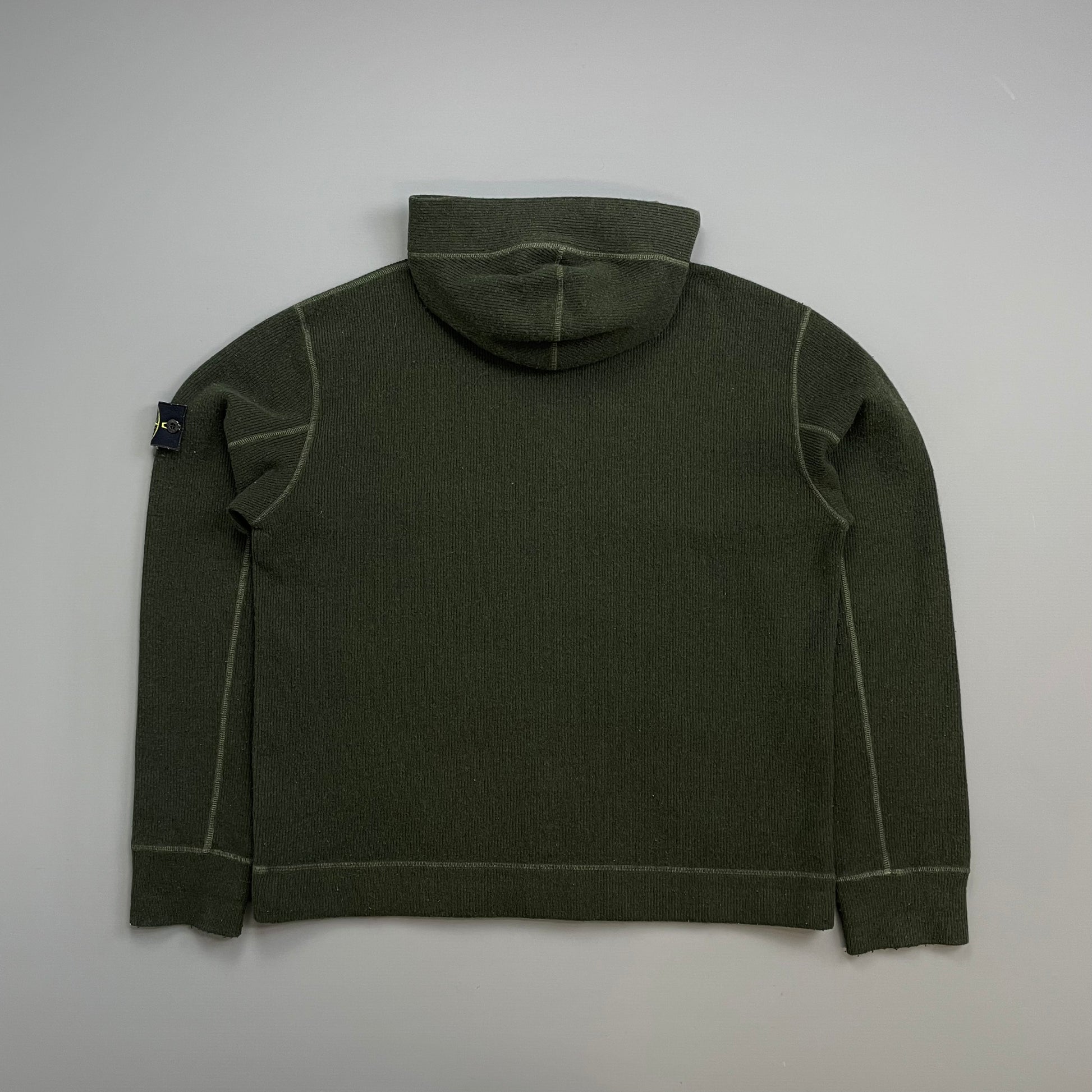 Stone Island Forest Green AW03 Wool-Blend Contrast Stitch Knit Hooded Jacket