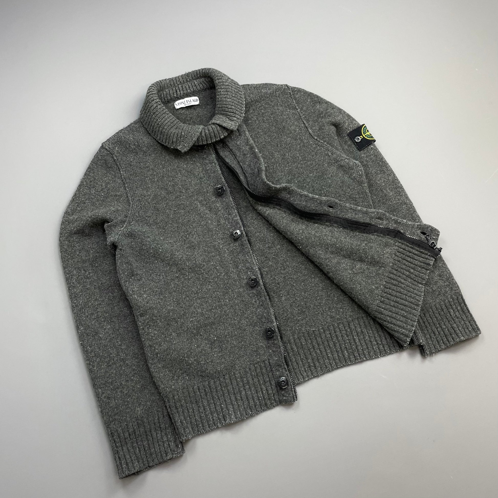 Stone Island Grey AW09 Wool Knit Zip & Button Cardigan Jacket