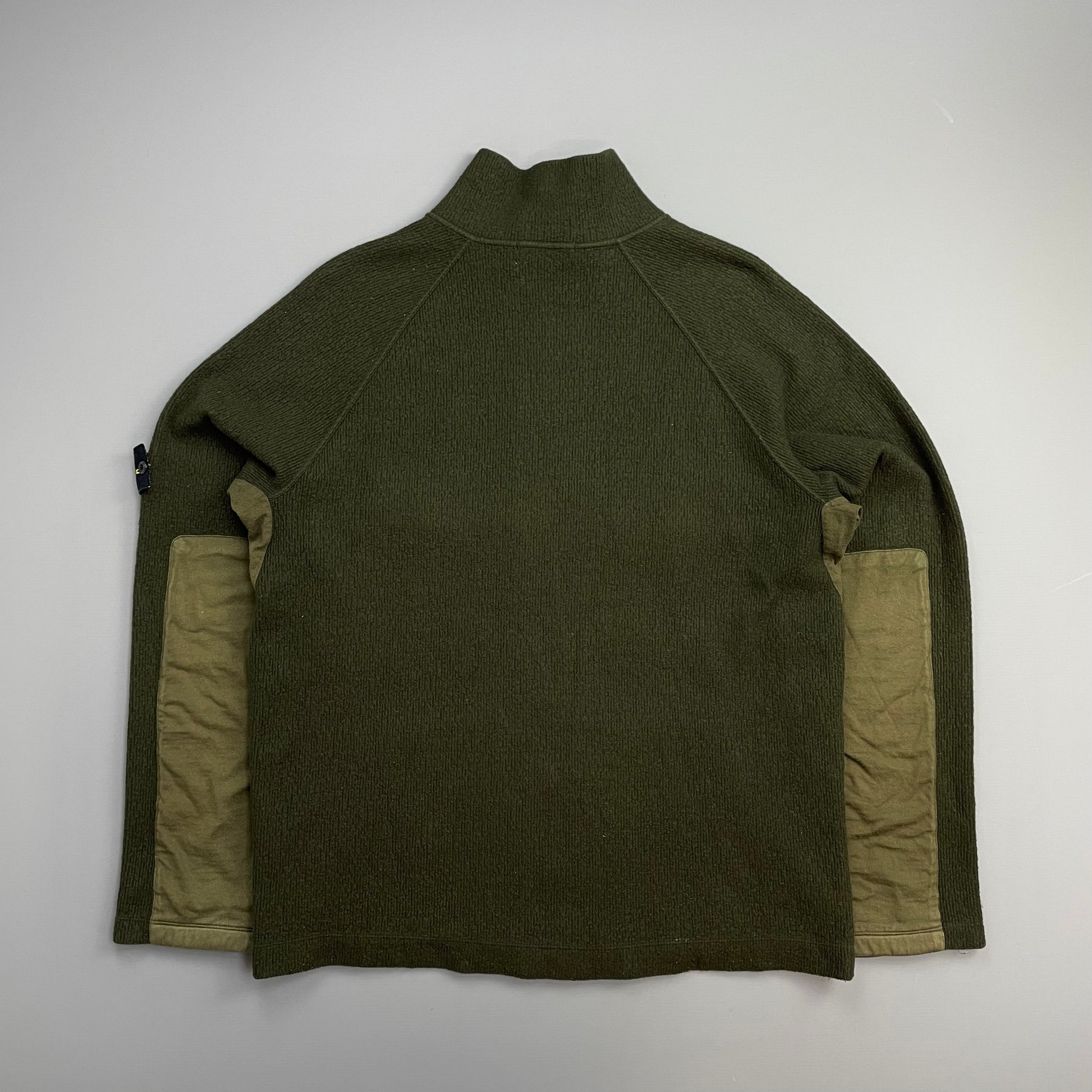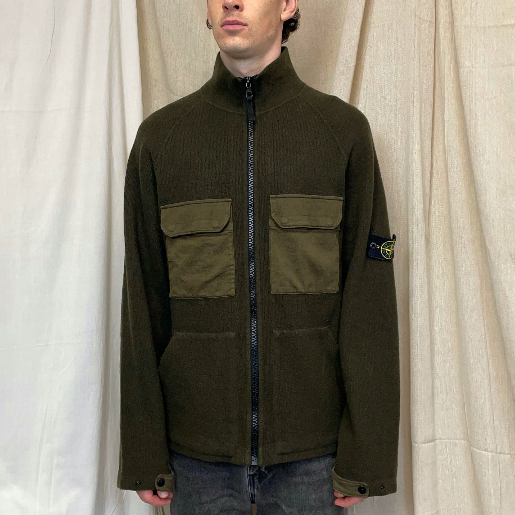 Stone Island Khaki Green AW05 Wool Blend Knit Zip-Through Jacket