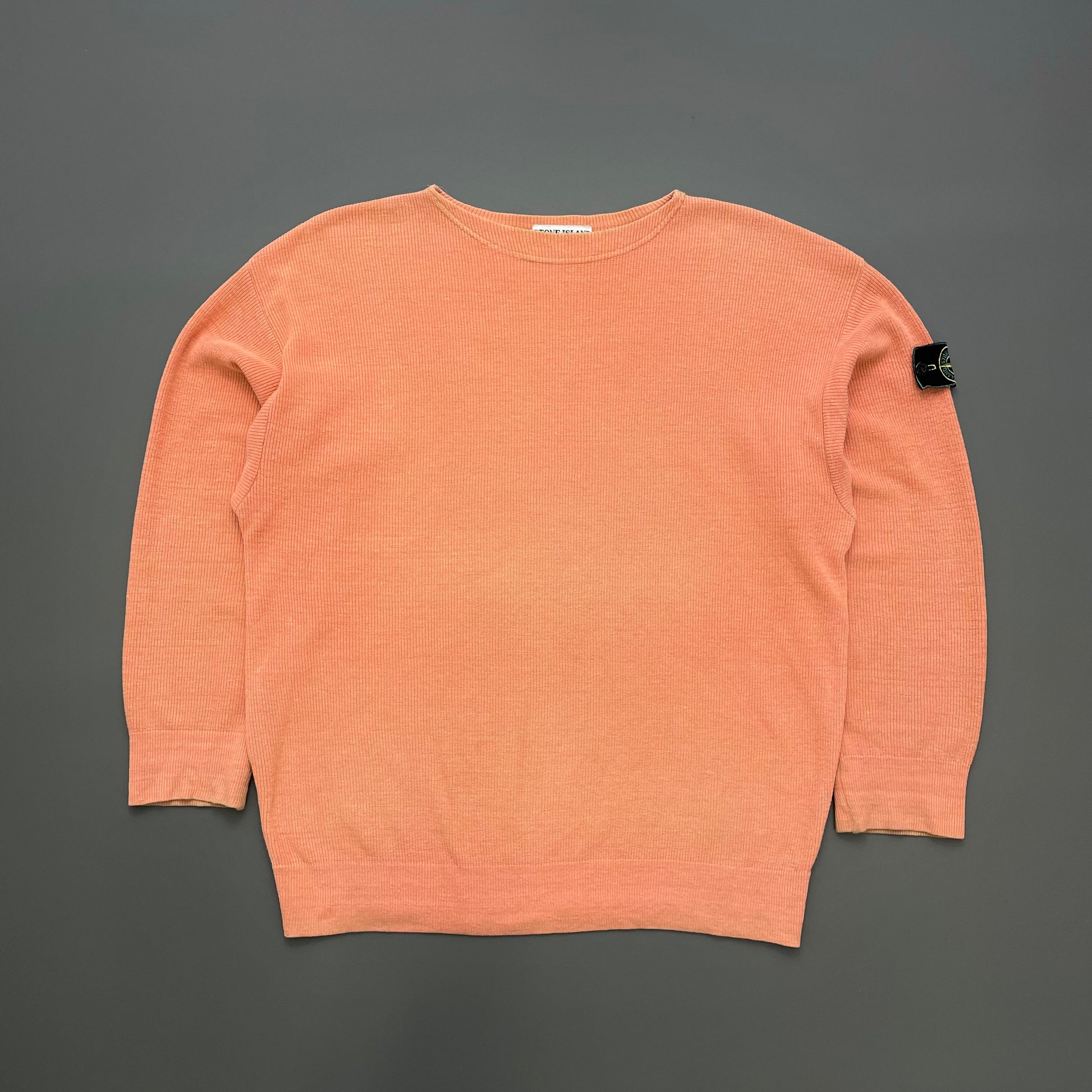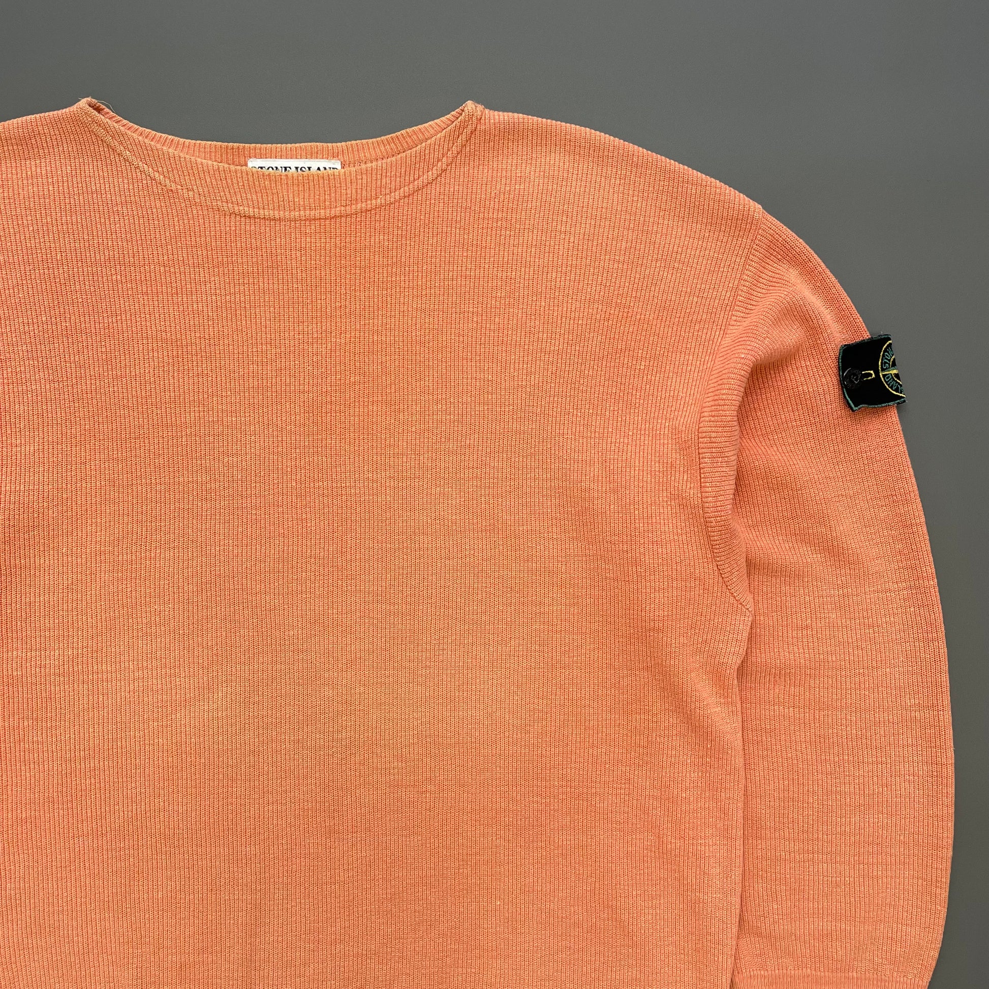 Stone Island Orange 80s Linen-Blend Green Edge Badge Ribbed Knit Jumper