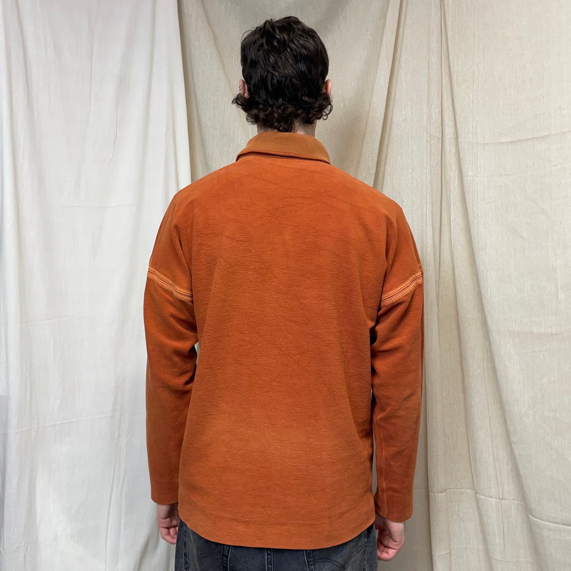 Stone Island Orange 80s Silver Button-Up Collared Spellout Jumper